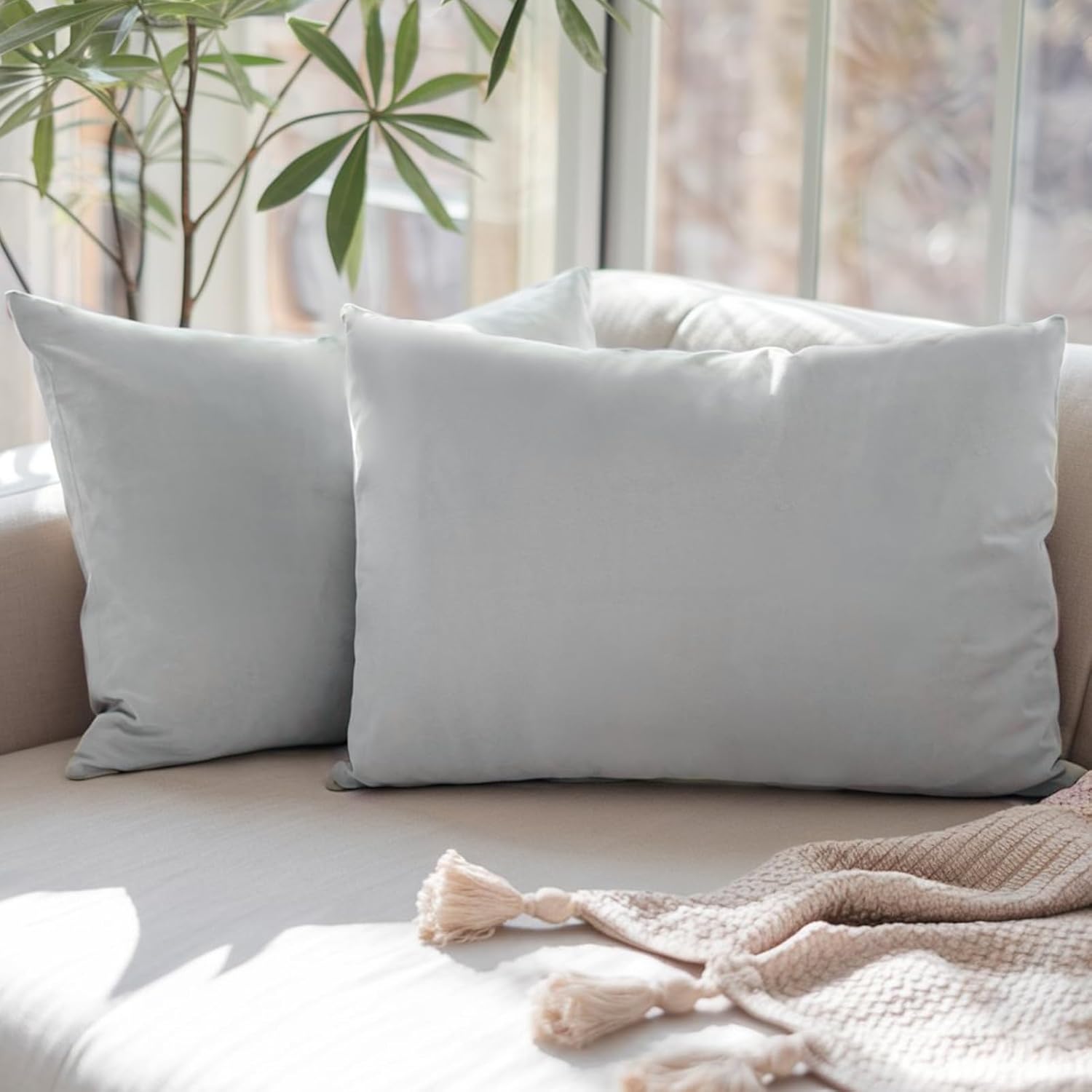 Калъфка за възглавница Aisbo, 30 x 50 см, Комплект от 2 - Калъфки за възглавници, 30 x 50 см, Светло сиво с мек микрофибърен цип, Калъфка за възглавница 30 x 50 см