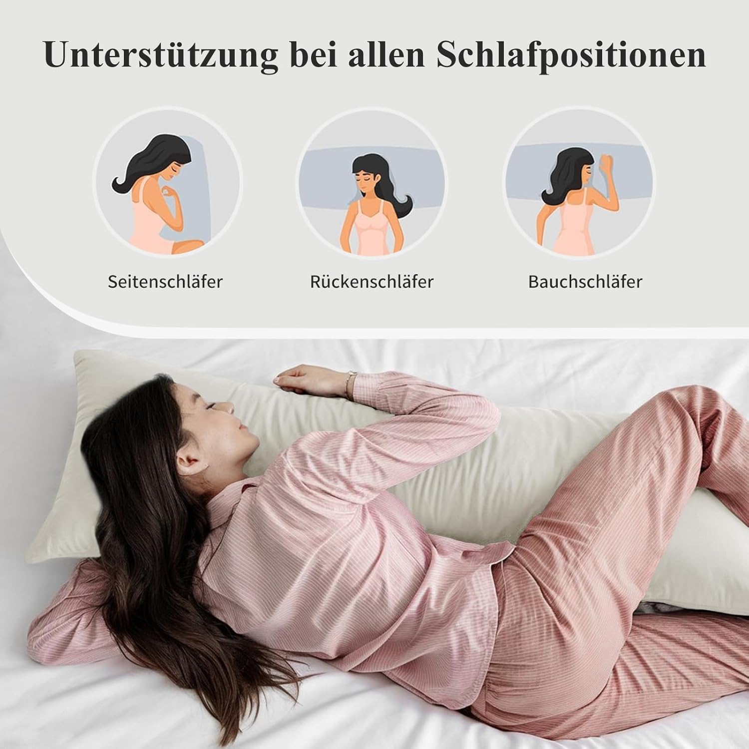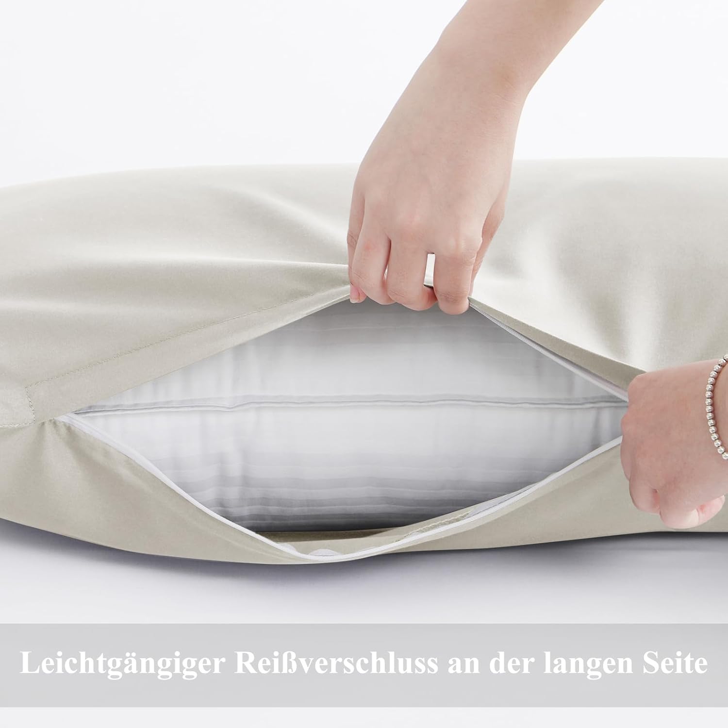 Калъфка за възглавница Aisbo 40 x 145 см, Комплект от 2 - Калъфка за възглавница за спане настрани 40 x 145 см, Бежова с цип, Изработена от микрофибър, Мека, Калъфка за възглавница Oeko-Tex 145 x 40 см за възглавница за спане настрани