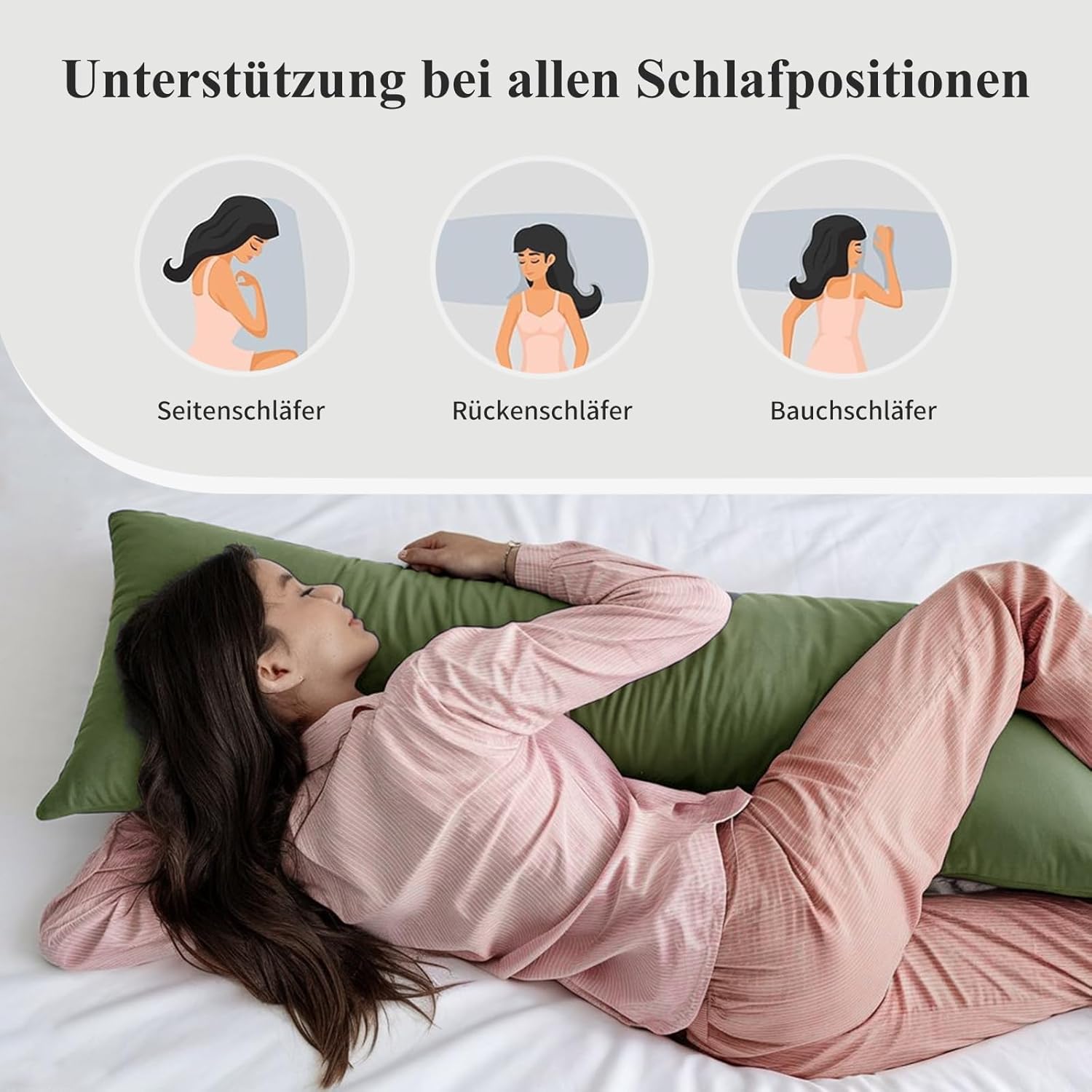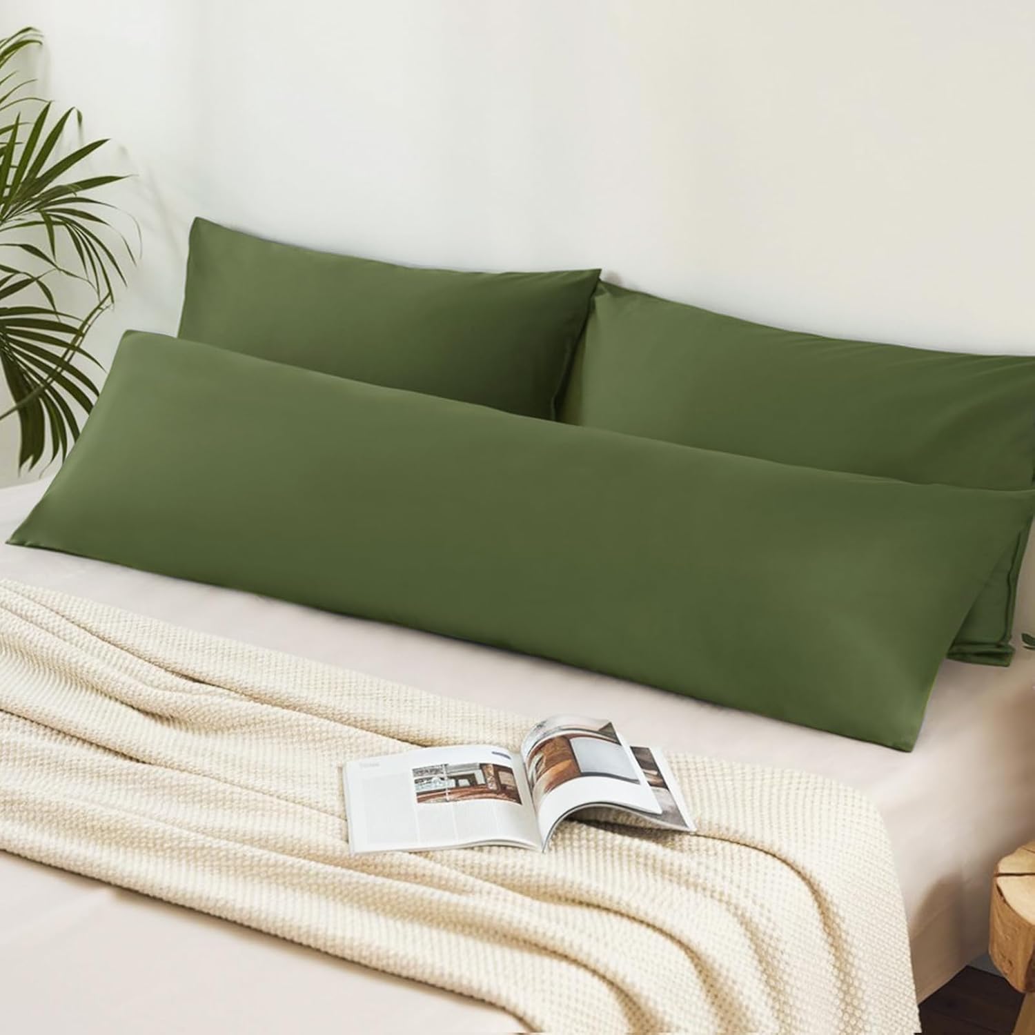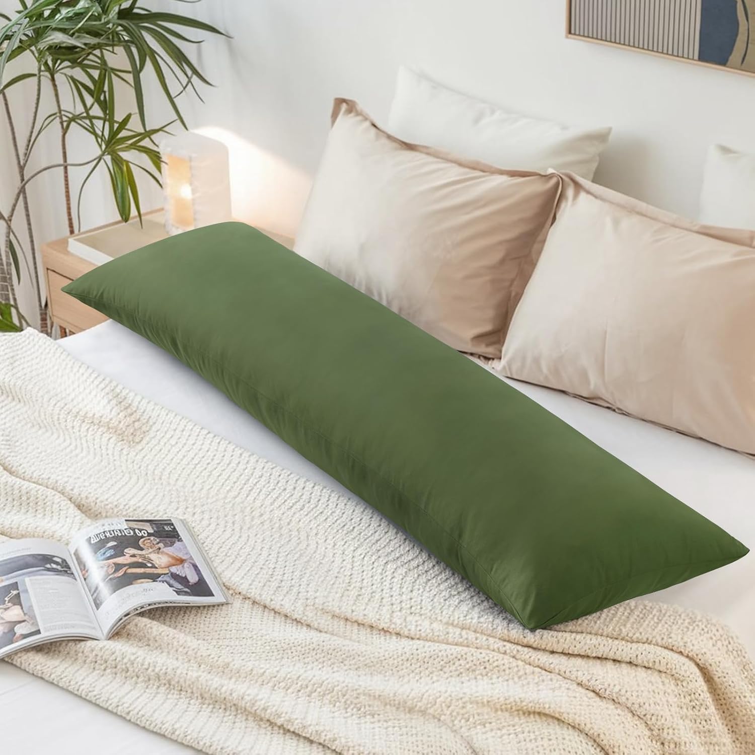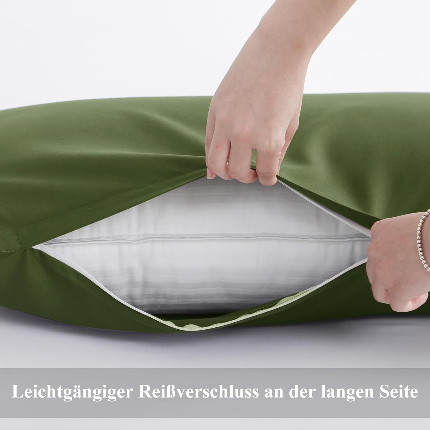 Калъфка за възглавница Aisbo 40 x 145 см, Комплект от 2 - Калъфка за възглавница за спане настрани 40 x 145 см, Маслинено зелено с микрофибърен цип, Мека, Калъфка за възглавница 145 x 40 см за спане настрани