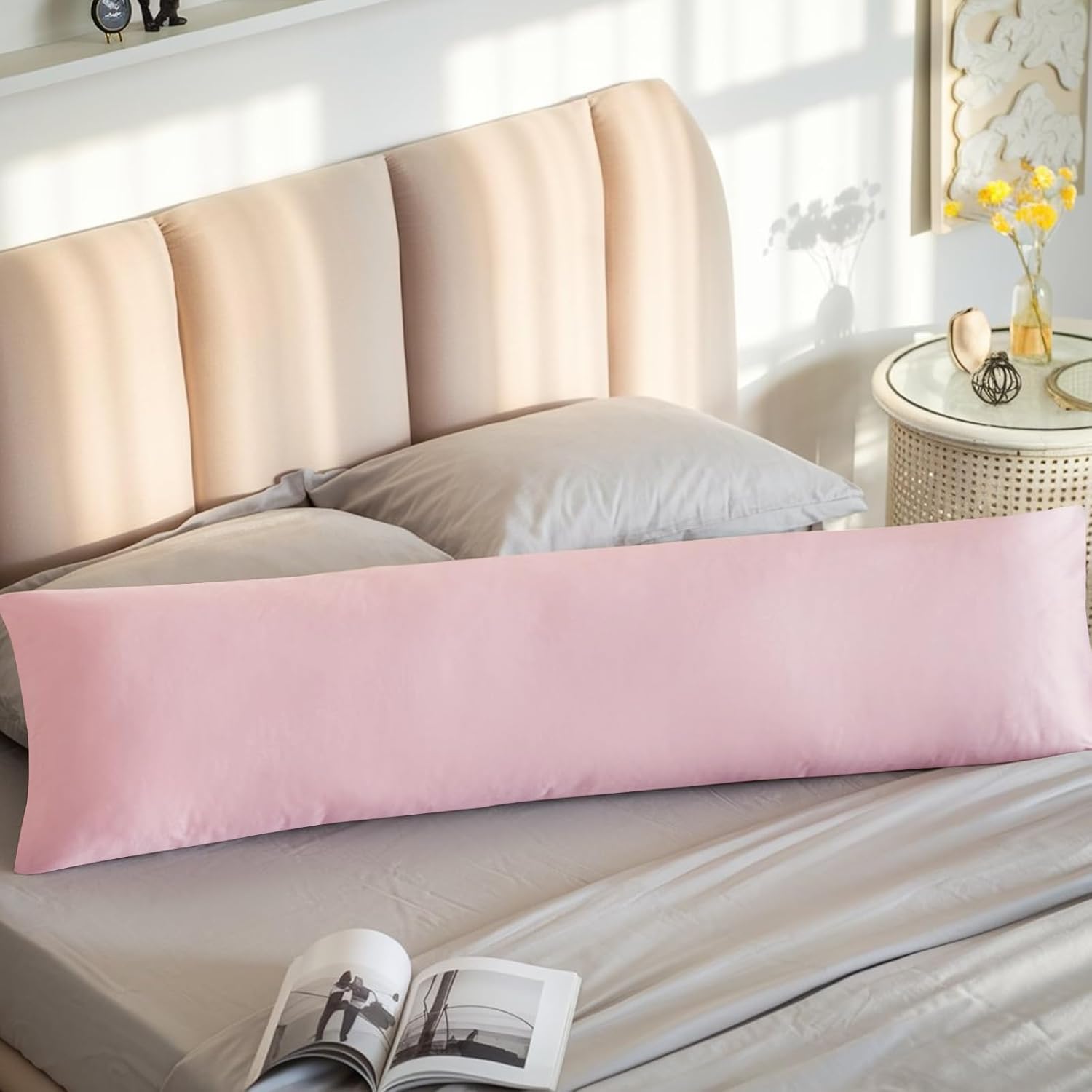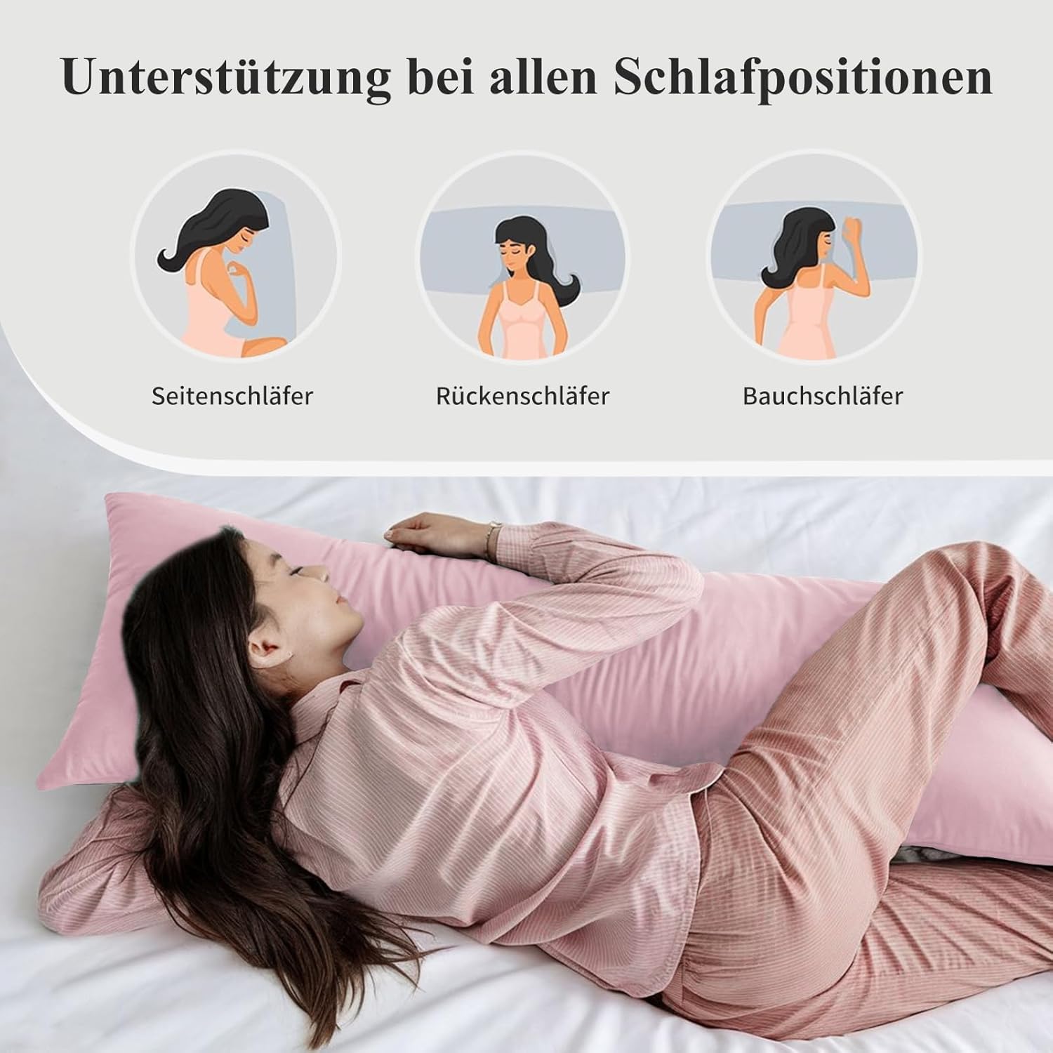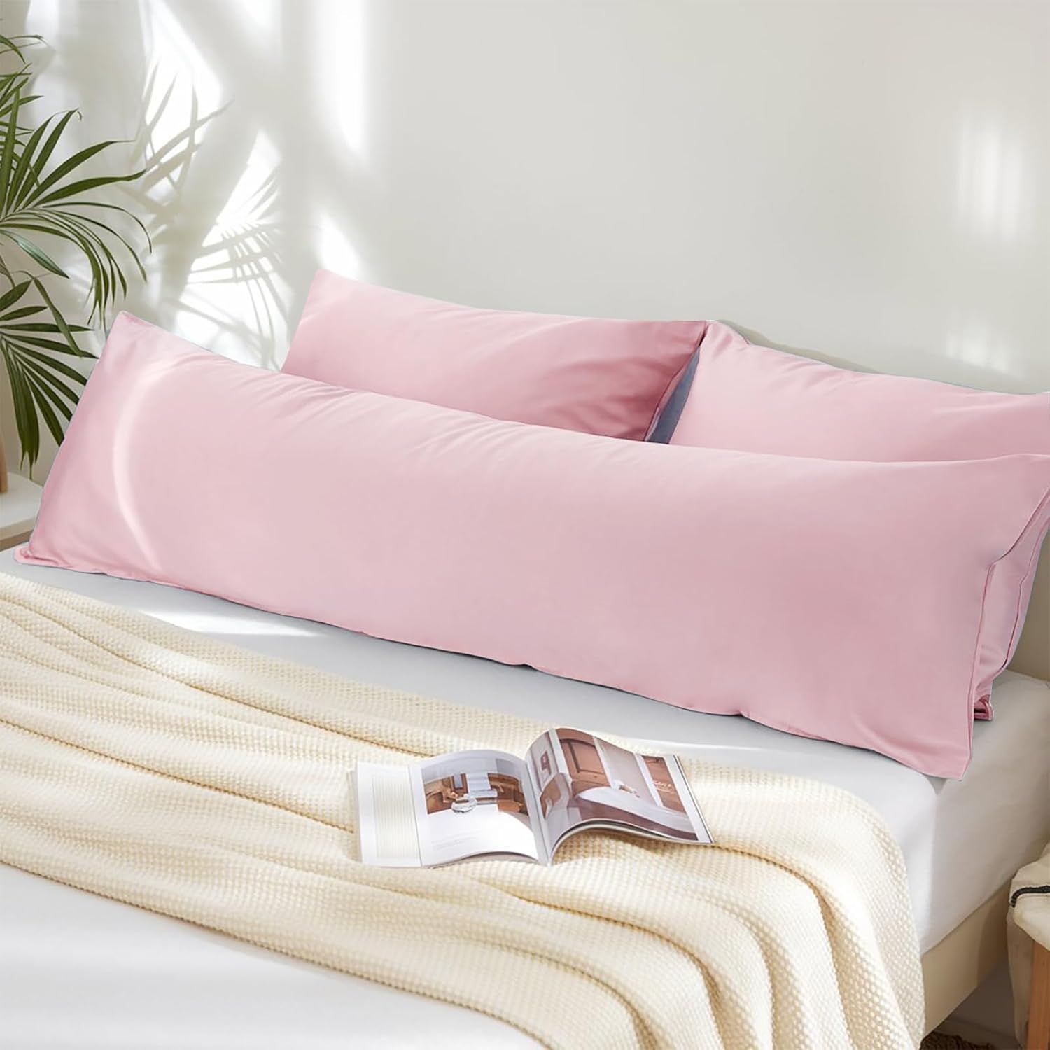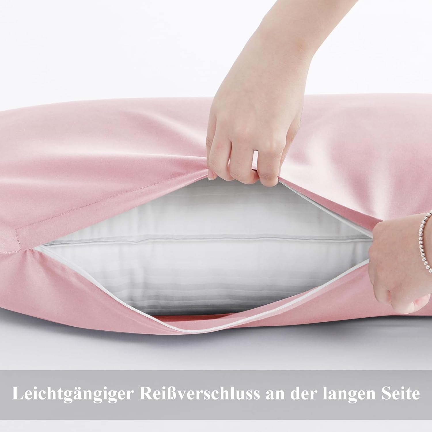Калъфка за възглавница Aisbo 40 x 145 см, Комплект от 2 - Калъфка за възглавница за спане настрани 40 x 145 см, Розова за жени с цип, Изработена от микрофибър, Мека, Калъфка за възглавница Oeko-Tex 145 x 40 см за спане настрани