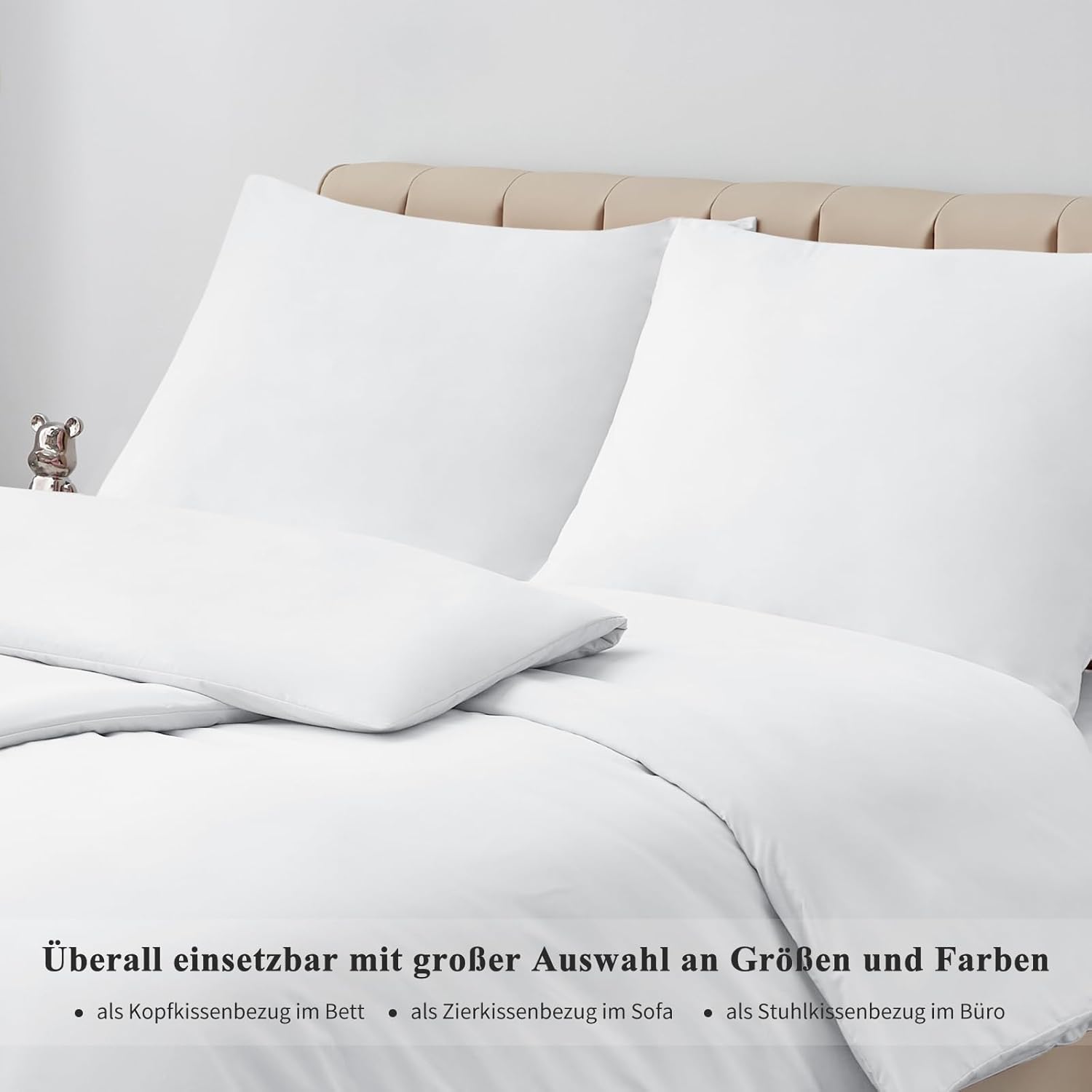 • Тези висококачествени калъфки за възглавници (80 x 80 см) в практичен комплект от 2 броя са изработени от микрофибър с фина повърхностна структура, която е супер мека на допир и е дишаща, така че имате комфортно усещане, когато лежите върху нея.