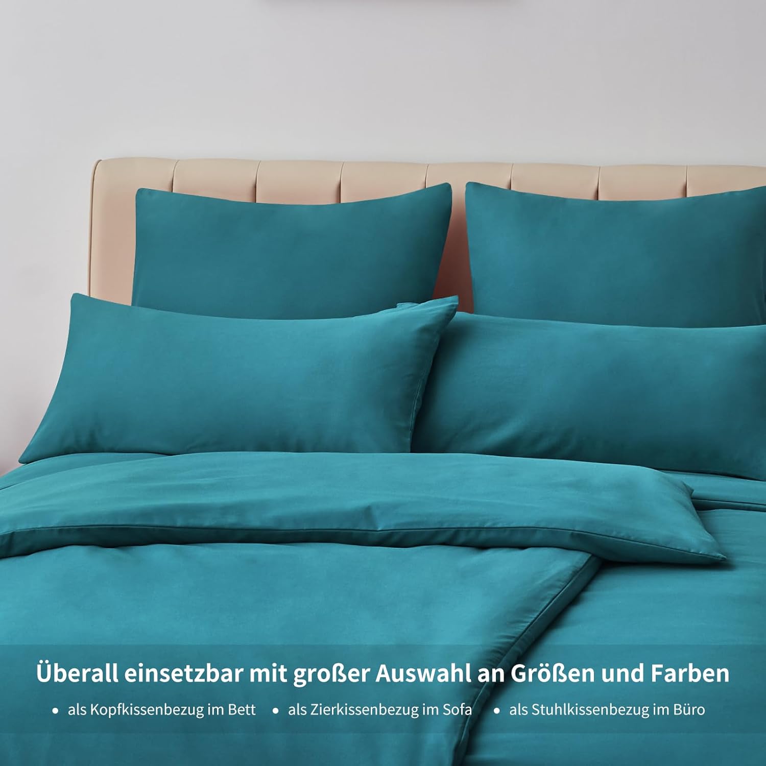 Калъфка за възглавница Aisbo 40 x 80 см, Комплект от 2 - Калъфки за възглавници 40 x 80 см, Тюркоазена с микрофибърен цип, Oeko-Tex калъфка за възглавница 40 x 80 см, Мека и нежелаеща