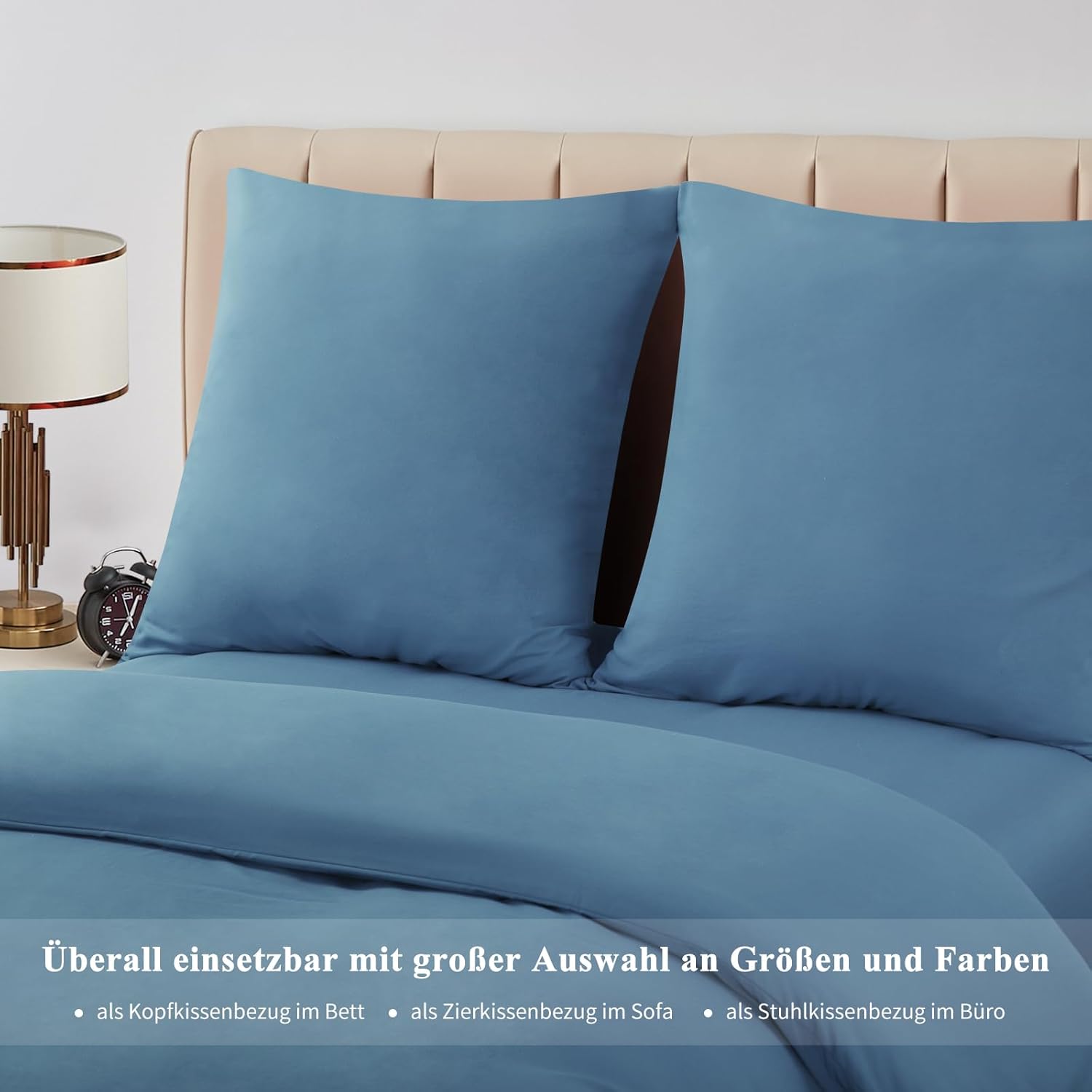 Калъфка за възглавница Aisbo 80 x 80 см, Комплект от 2 - Калъфки за възглавници 80 x 80 см, дънково сини с микрофибърен цип, Oeko-Tex калъфка за възглавница, 80 x 80 см, мека и нежелаеща