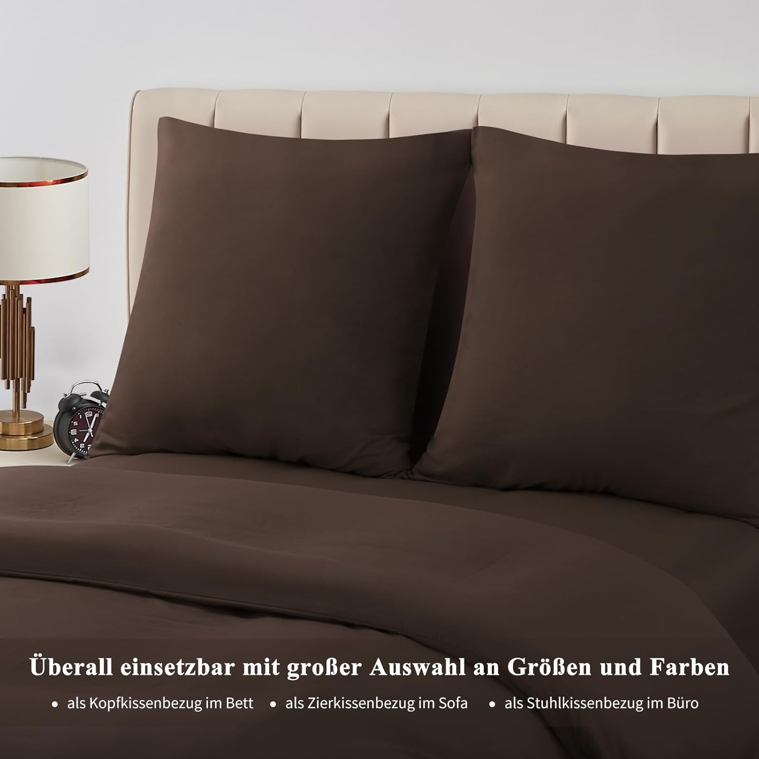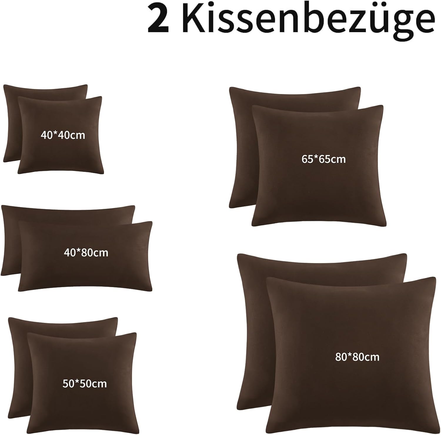 Калъфка за възглавница Aisbo 80 x 80 см, Комплект от 2 - Калъфки за възглавници 80 x 80 см, Кафява с микрофибърен цип, Калъфка за възглавница Oeko-Tex, 80 x 80 см, Мека и не се глади
