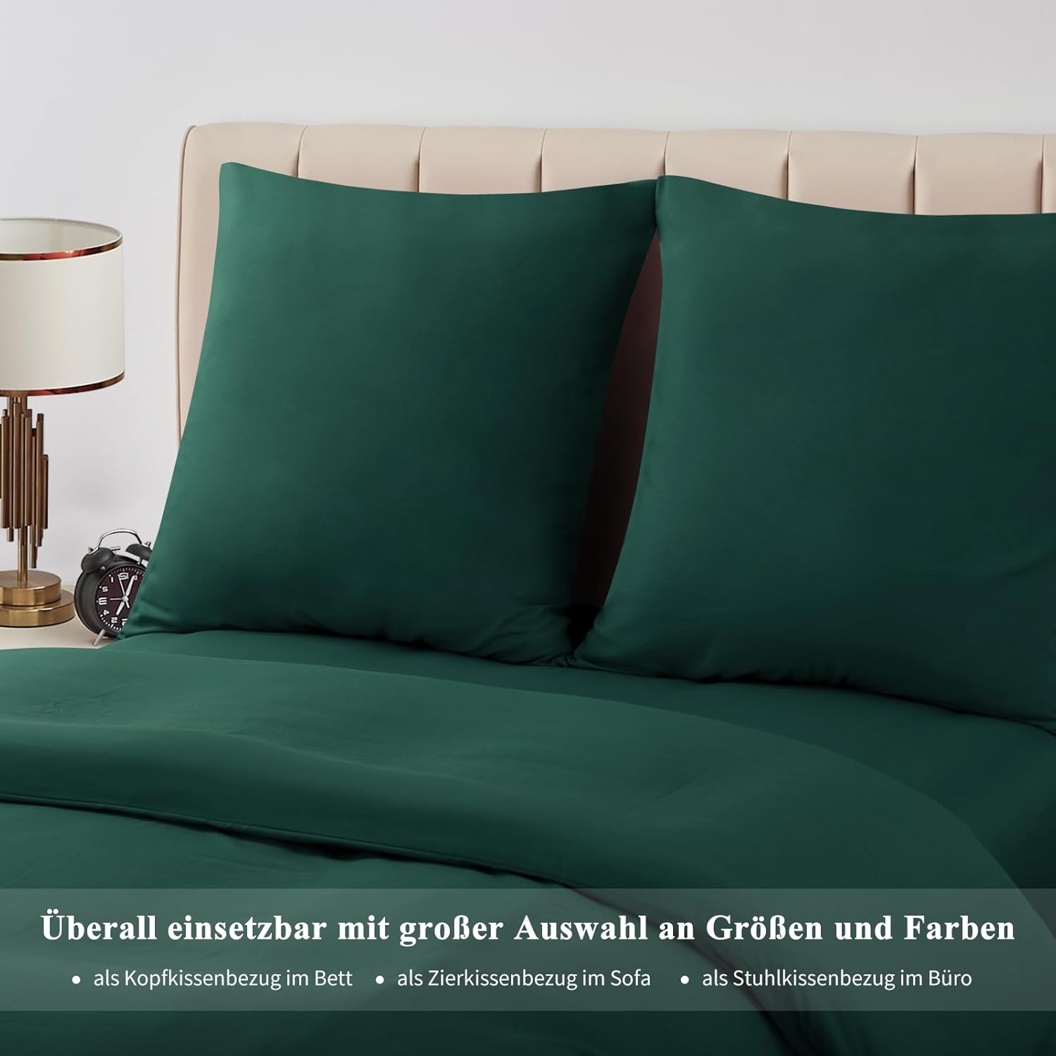 Калъфка за възглавница Aisbo 80 x 80 см, Комплект от 2 - Калъфки за възглавници 80 x 80 см, Тъмно зелено с микрофибърен цип, Oeko-Tex калъфка за възглавница, 80 x 80 см, мека и не се глади