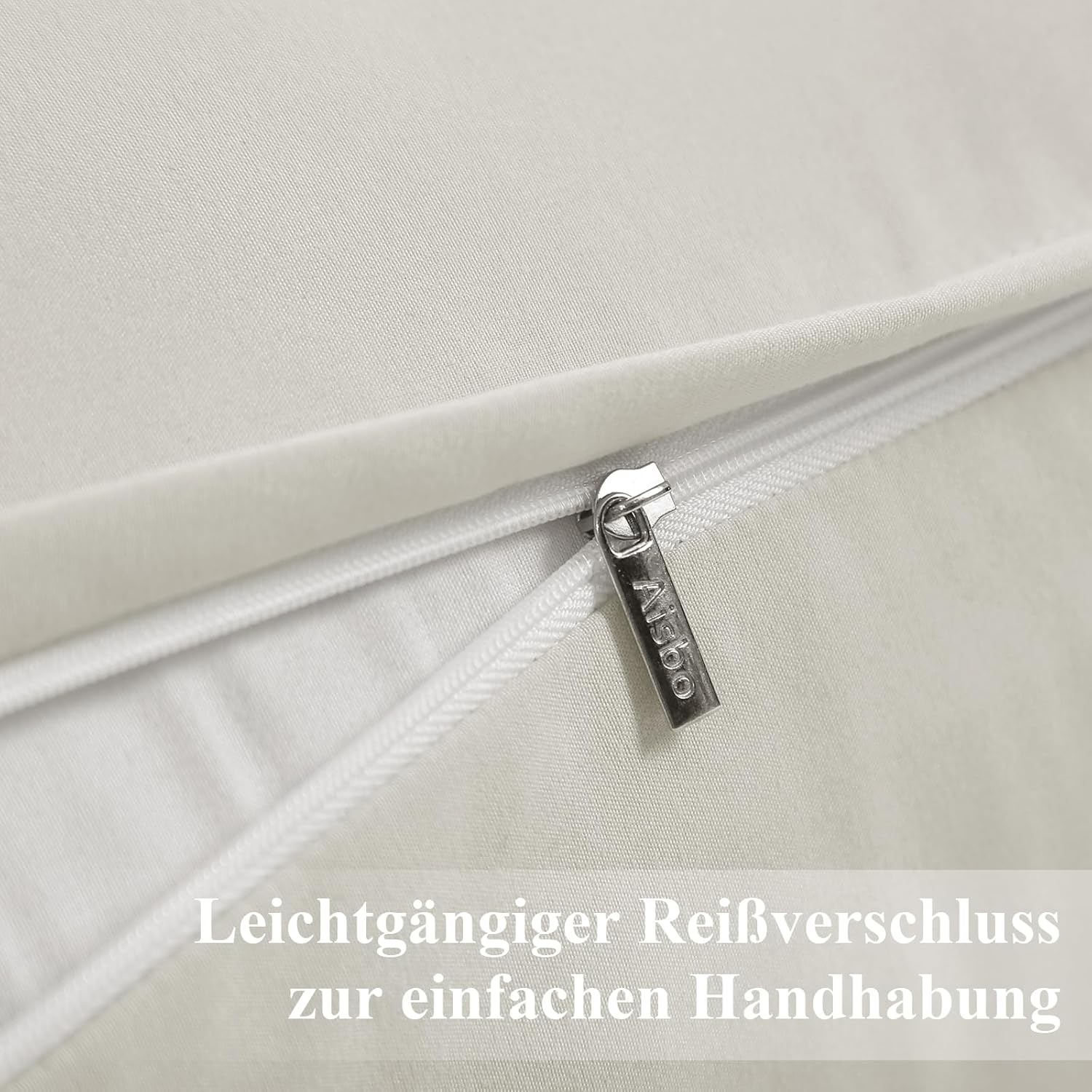 • Калъфката за възглавница (80 x 80 см) е снабдена с висококачествен цип, който улеснява поставянето и свалянето на комплекта от 2. Поради тази причина няма да има неприятен натиск върху тила ви, тъй като ципът е затворен с парче плат, така че можете да се насладите на безгрижен и спокоен сън.