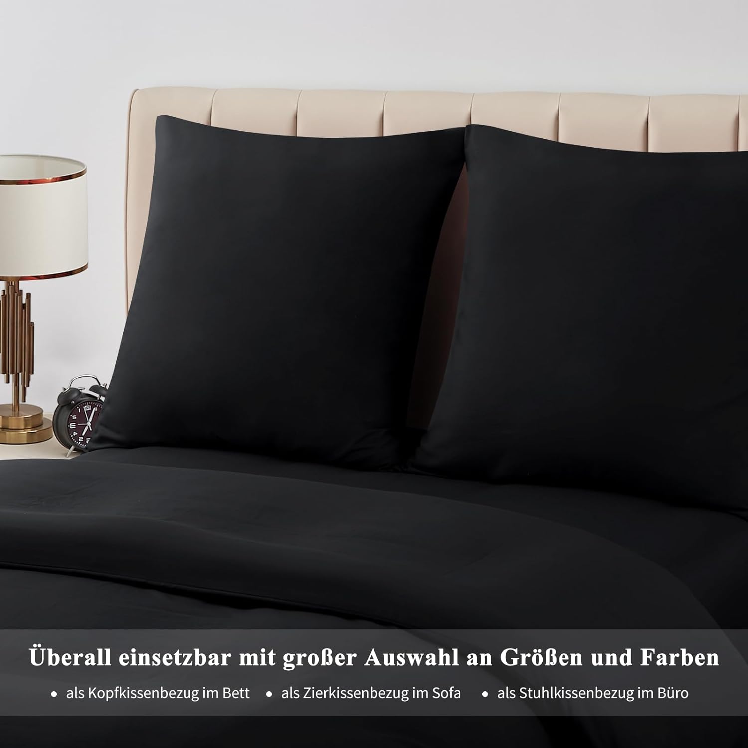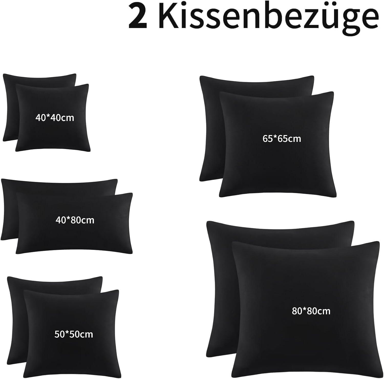 Калъфка за възглавница Aisbo, 80 x 80 см, Комплект от 2, Черна, с цип от мек микрофибър