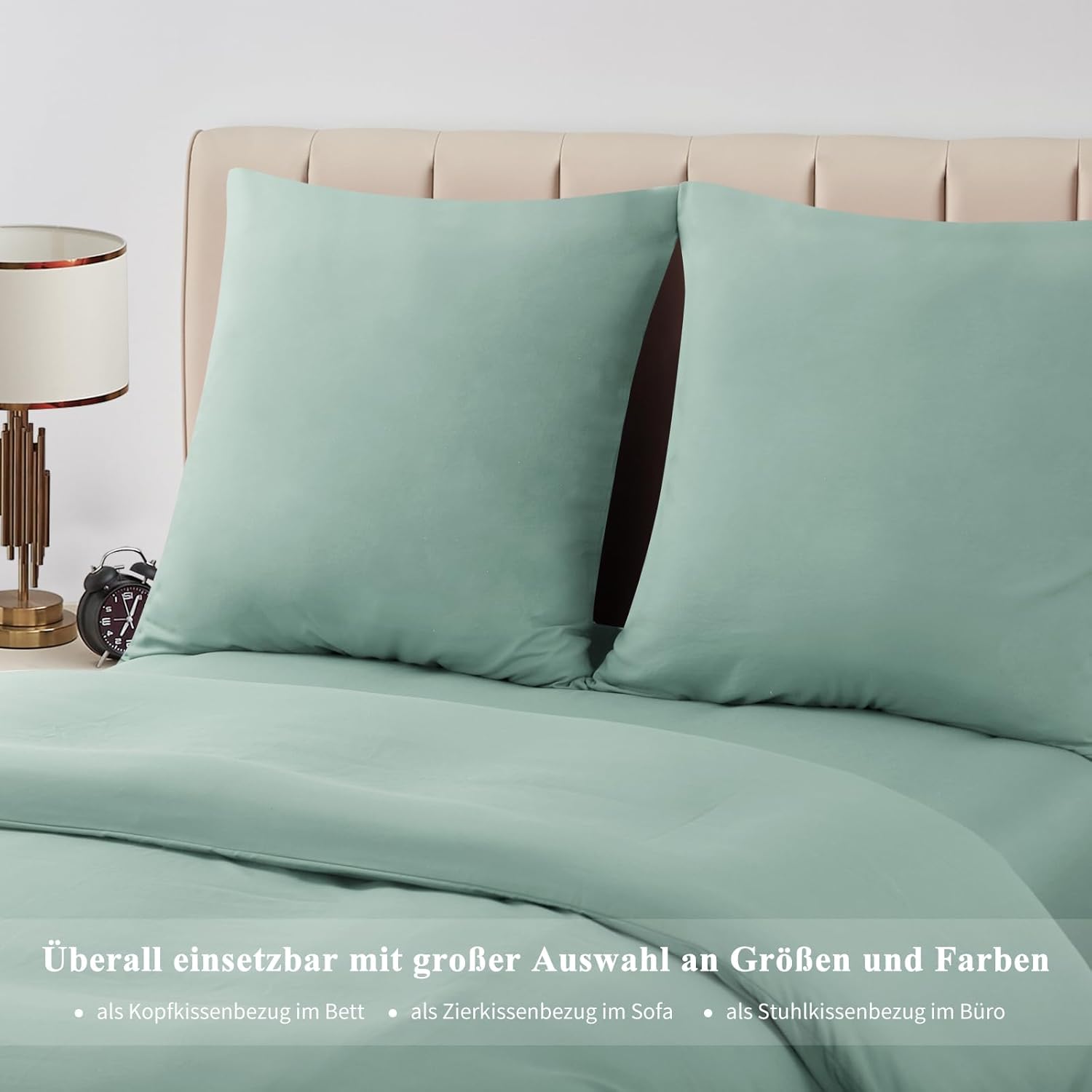 • Тези висококачествени калъфки за възглавници (80 x 80 см) в практичен комплект от 2 броя са изработени от микрофибър с фина повърхностна структура, която е супер мека на допир и е дишаща, така че имате комфортно усещане, когато лежите върху нея.