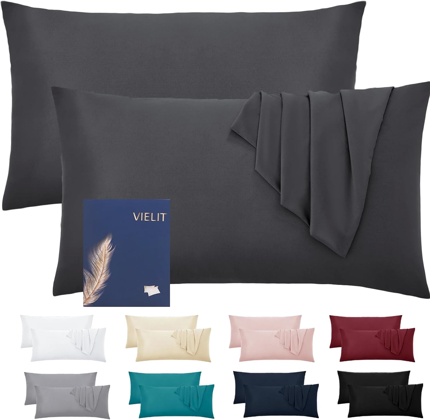 Калъфка за възглавница Vielit 40 x 60 см, със сертификат OEKO-TEX, Меки калъфки за възглавници, Комплект от 2 калъфки за възглавници от микрофибър, Сив, Калъфка за възглавница 40 x 60 см, Устойчива, Хипоалергенна