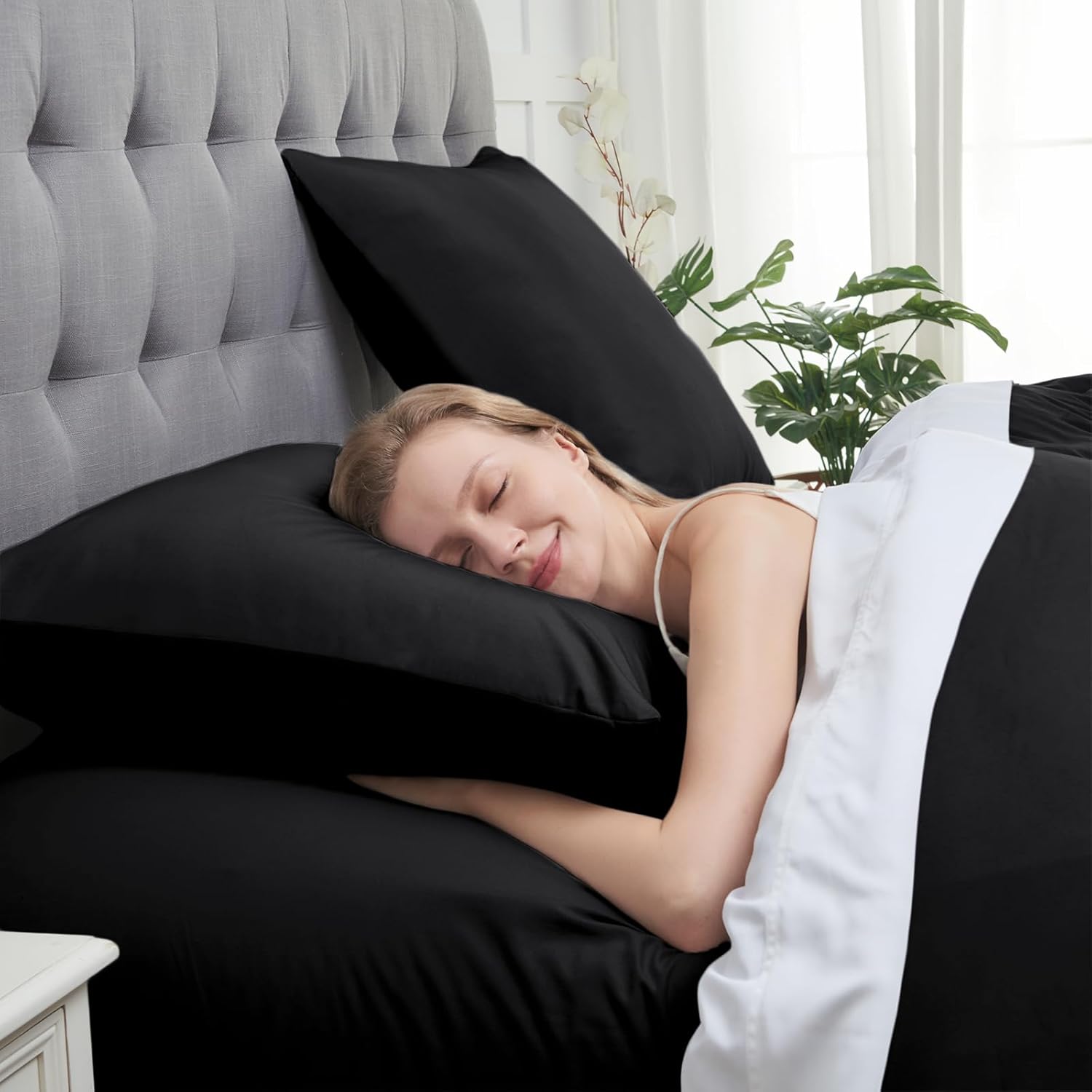 Калъфка за възглавница Vielit 80 x 80 см, Черна, Мека калъфка за възглавница, Комплект от 2 калъфки за възглавници от микрофибър, Декоративна калъфка за възглавница 80 x 80 см, със сертификат OEKO-TEX, Устойчива, Хипоалергенна