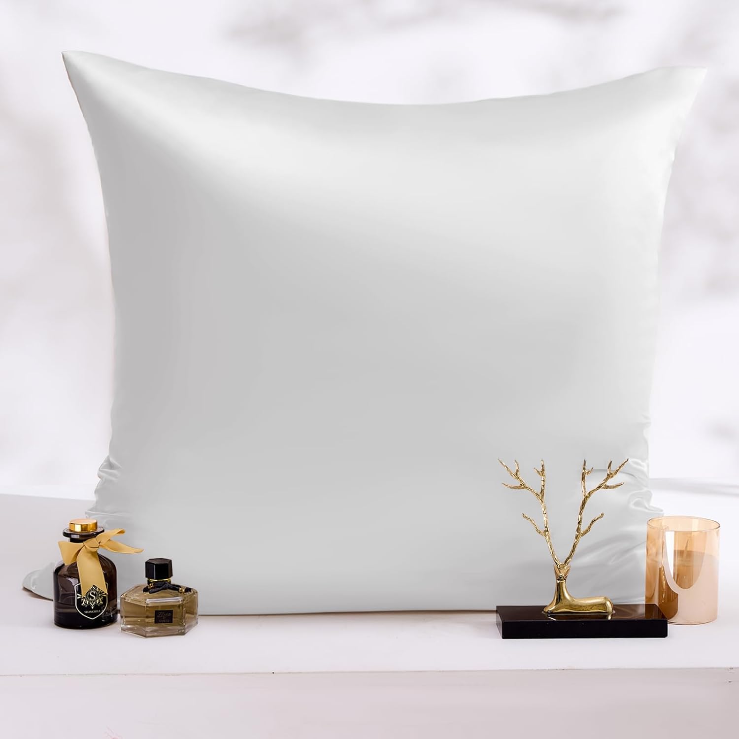 Калъфка за възглавница Vielit от сатен, 60 x 60 см, комплект от 2 и 2 ластика за коса, цвят слонова кост, мека като коприна, лесна за поддръжка, за коса и кожа