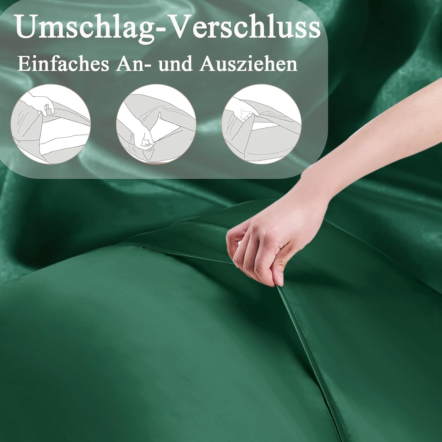 Калъфка за възглавница Vielit от сатен, 60 x 60 см, комплект от 2 и 2 ластика за коса, тъмнозелена, мека като коприна, лесна за поддръжка, за коса и кожа
