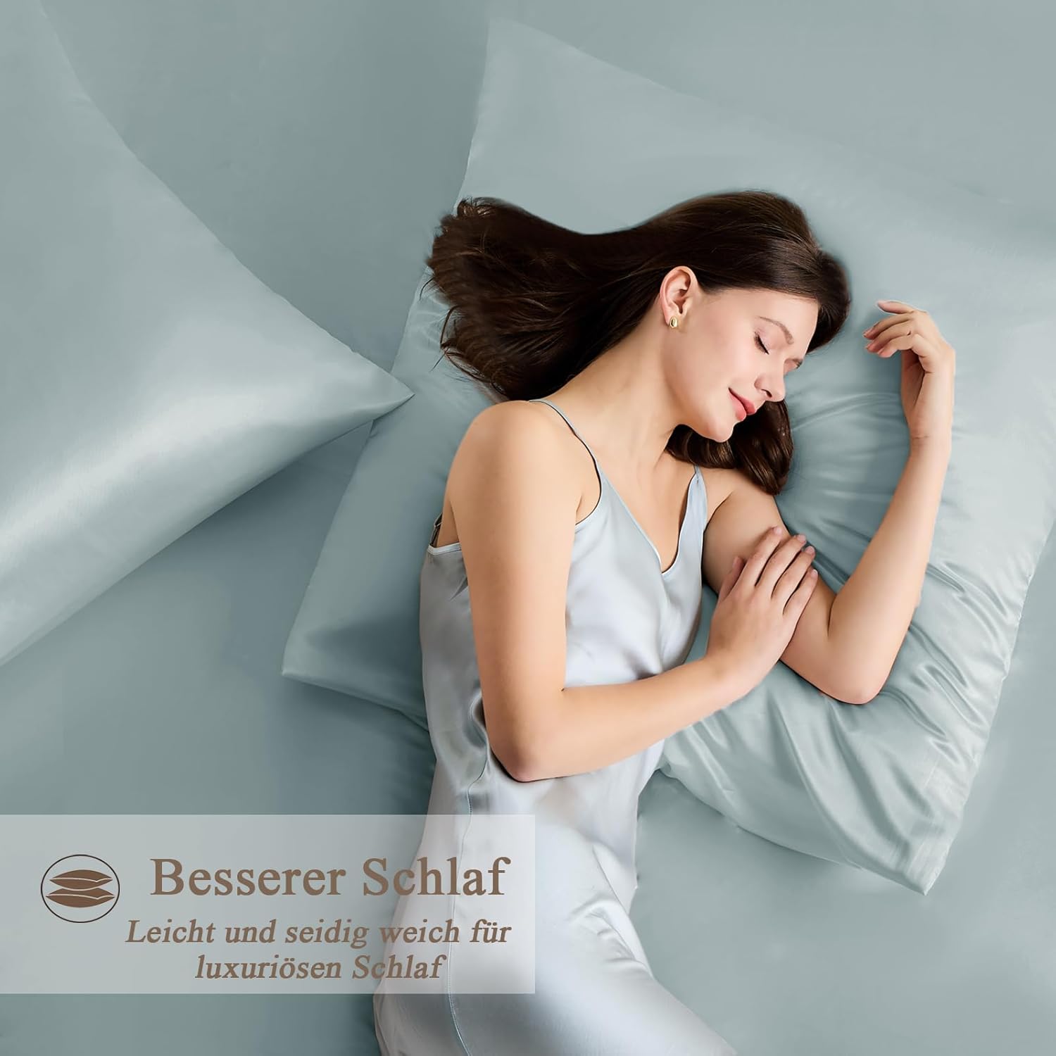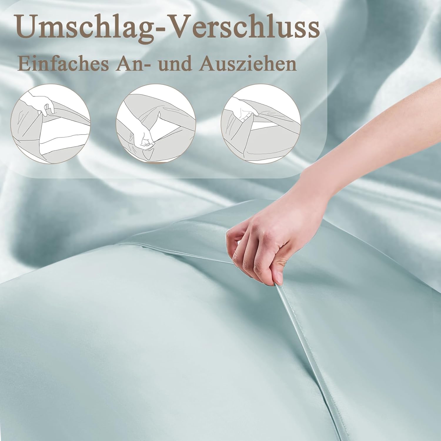 • Закопчаване тип „плик“ и възможност за пране в пералня: Комплект от 2 сатенени калъфки за възглавници (40 x 80 см). Закопчаването тип „плик“ улеснява поставянето и свалянето. Нашите сатенени калъфки за възглавници могат да се перат в пералня без усилие при температура до 30°C и стават още по-меки и пухкави след всяко пране. Наслаждавайте се на свежо и успокояващо изживяване по време на сън всеки ден. Те няма да избледнеят и са по-лесни за поддръжка от копринените калъфки за възглавници.