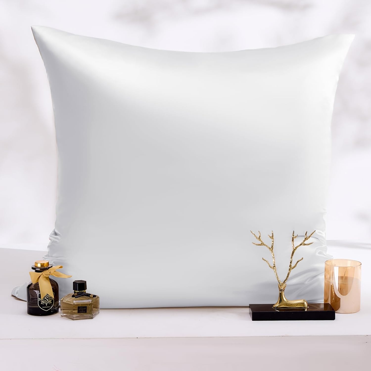 Калъфка за възглавница Vielit от сатен, 65 x 65 см, комплект от 2 и 2 ластика за коса, бяла, мека като коприна, лесна за поддръжка, за коса и кожа