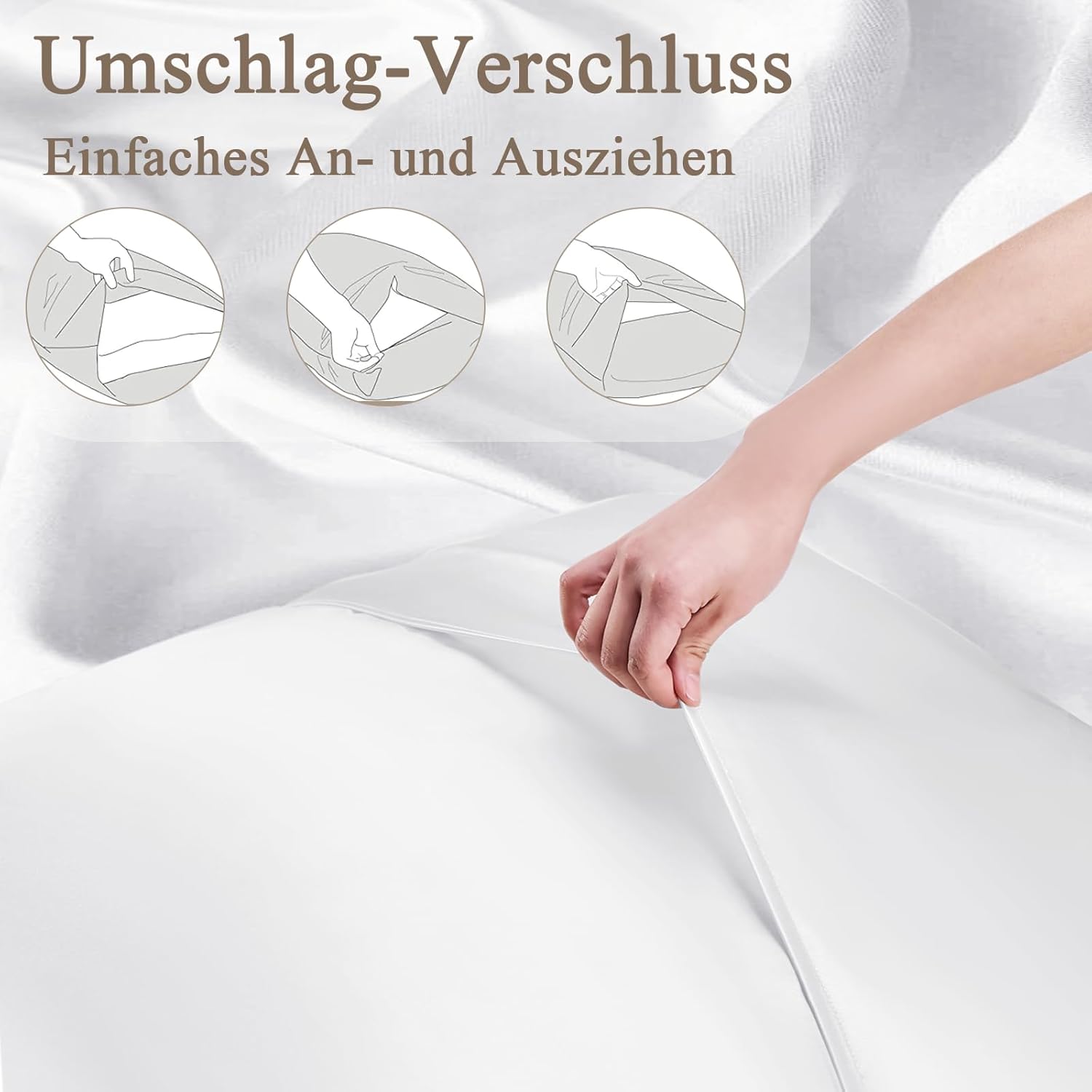 • Закопчаване тип „плик“ и възможност за пране в пералня: Комплект от 2 сатенени калъфки за възглавници (40 x 80 см). Закопчаването тип „плик“ улеснява поставянето и свалянето. Нашите сатенени калъфки за възглавници могат да се перат в пералня без усилие при температура до 30°C и стават още по-меки и пухкави след всяко пране. Наслаждавайте се на свежо и успокояващо изживяване по време на сън всеки ден. Те няма да избледнеят и са по-лесни за поддръжка от копринените калъфки за възглавници.