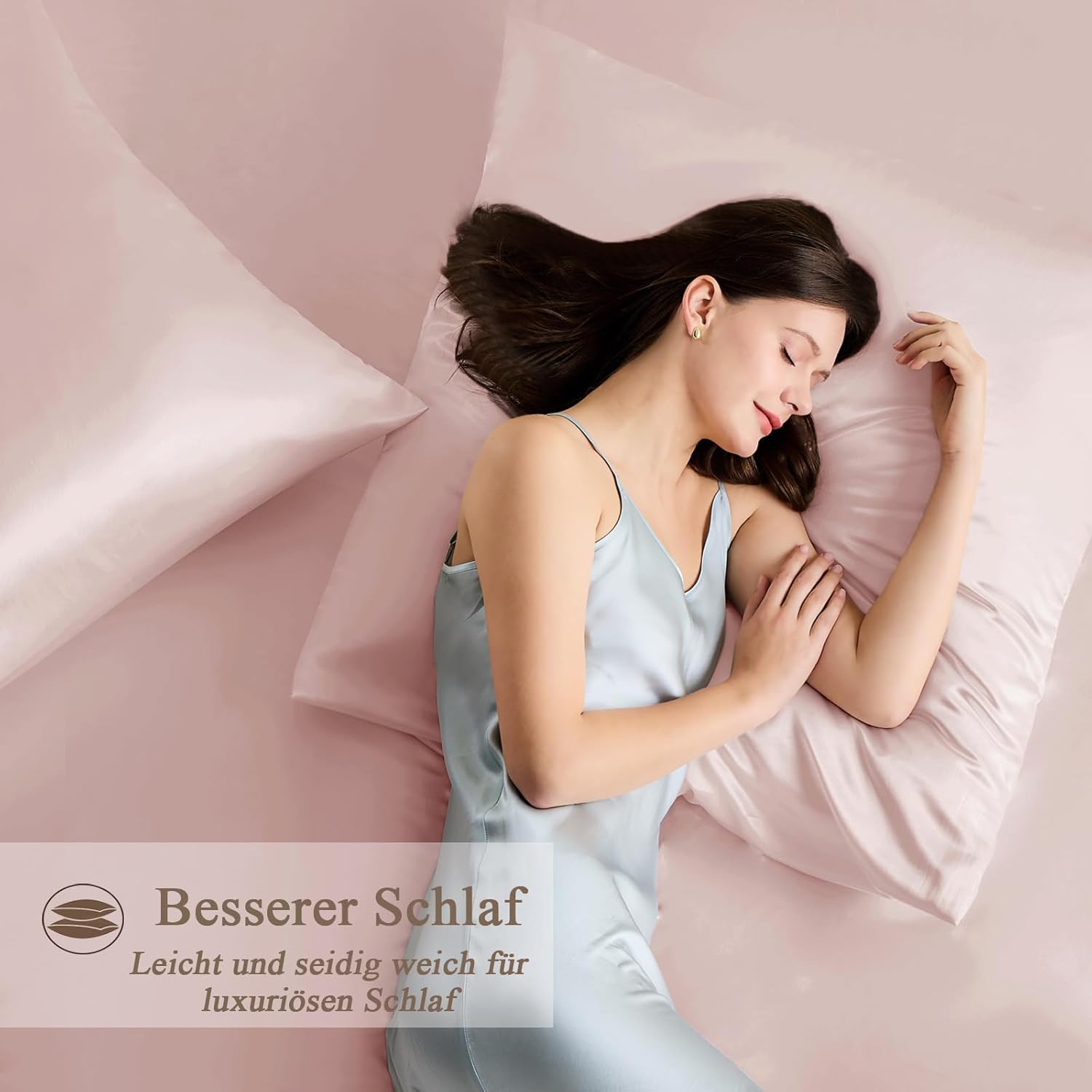 • Закопчаване тип „плик“ и възможност за пране в пералня: Комплект от 2 сатенени калъфки за възглавници (40 x 80 см). Закопчаването тип „плик“ улеснява поставянето и свалянето. Нашите сатенени калъфки за възглавници могат да се перат в пералня без усилие при температура до 30°C и стават още по-меки и пухкави след всяко пране. Наслаждавайте се на свежо и успокояващо изживяване по време на сън всеки ден. Те няма да избледнеят и са по-лесни за поддръжка от копринените калъфки за възглавници.