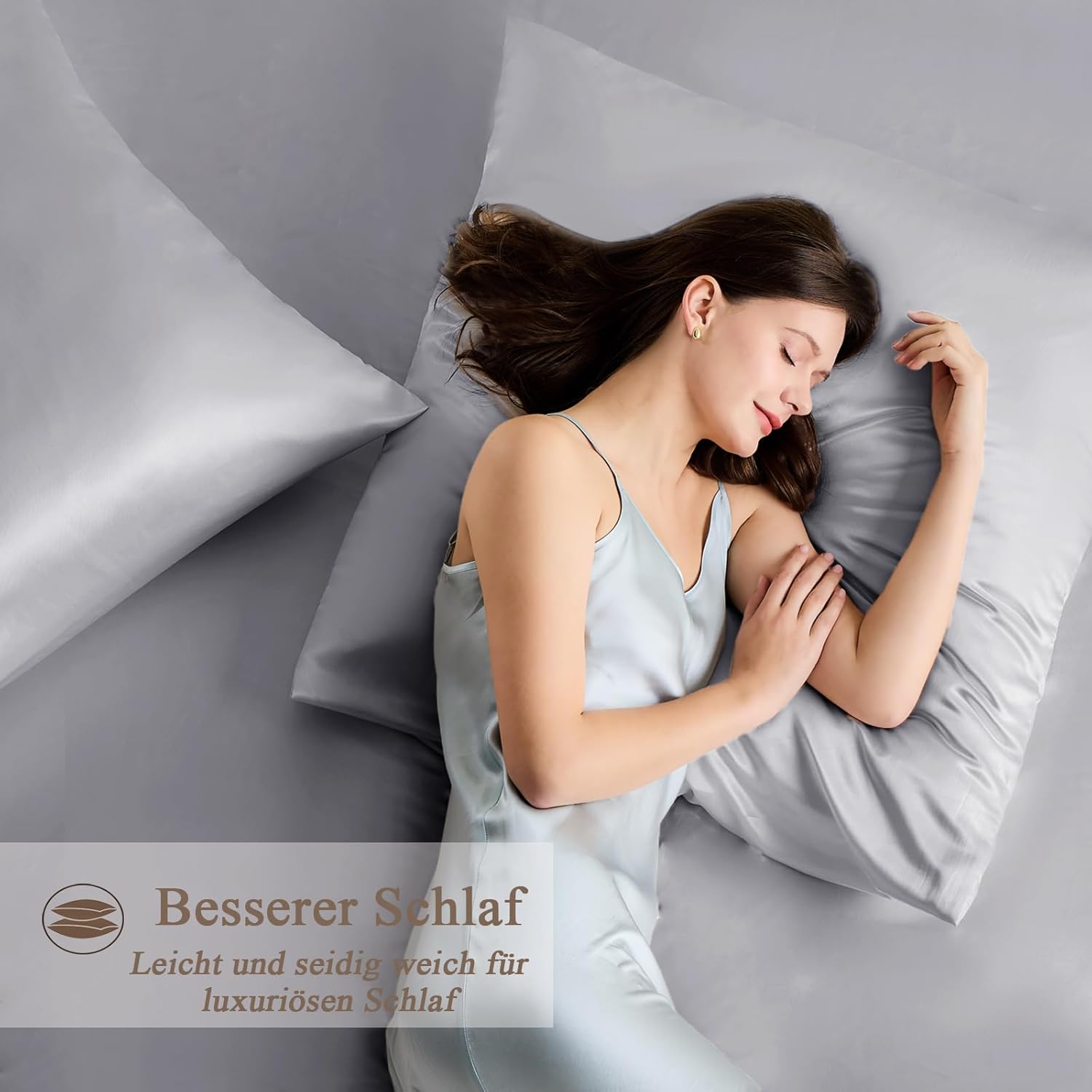 Калъфка за възглавница Vielit от сатен, 65 x 65 см, комплект от 2 и 2 ластика за коса, сива, мека като коприна, лесна за поддръжка, за коса и кожа