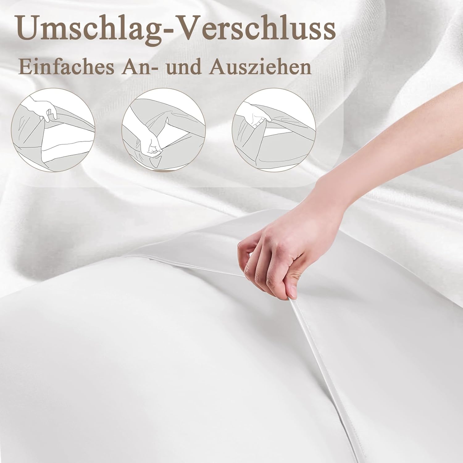 • Закопчаване тип „плик“ и възможност за пране в пералня: Комплект от 2 сатенени калъфки за възглавници (40 x 80 см). Закопчаването тип „плик“ улеснява поставянето и свалянето. Нашите сатенени калъфки за възглавници могат да се перат в пералня без усилие при температура до 30°C и стават още по-меки и пухкави след всяко пране. Наслаждавайте се на свежо и успокояващо изживяване по време на сън всеки ден. Те няма да избледнеят и са по-лесни за поддръжка от копринените калъфки за възглавници.