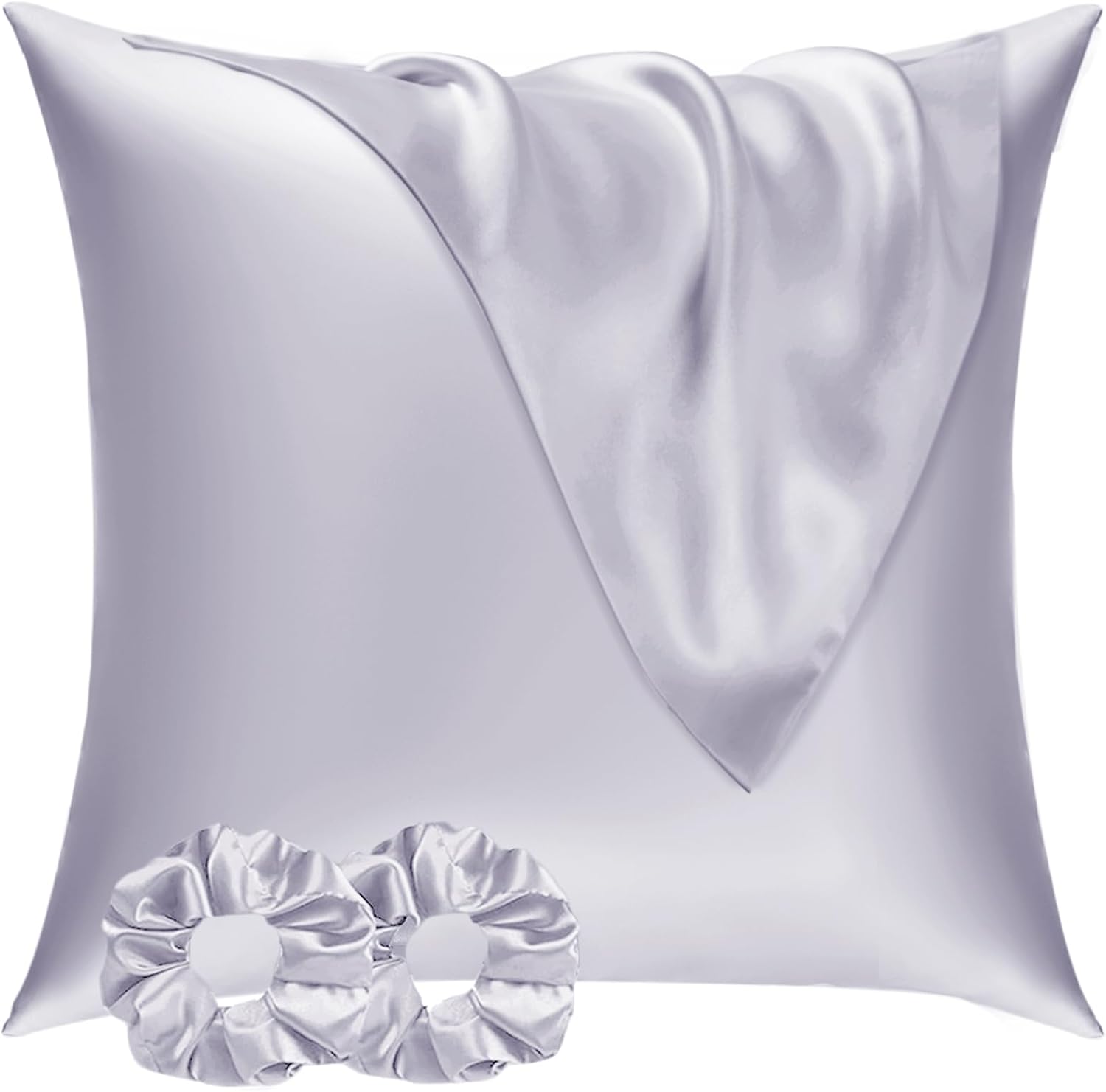 Калъфка за възглавница Vielit от сатен, 65 x 65 см, комплект от 2 и 2 ластика за коса, цвят слонова кост, мека като коприна, лесна за поддръжка, за коса и кожа