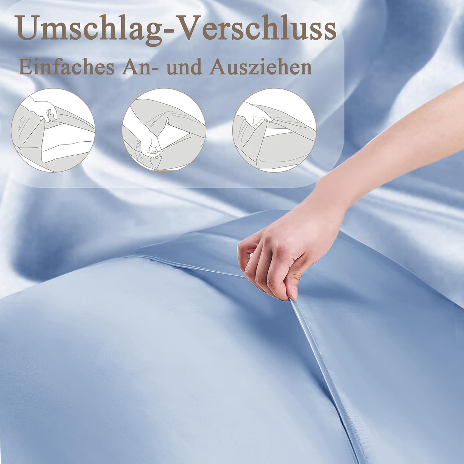 • Закопчаване тип „плик“ и възможност за пране в пералня: Комплект от 2 сатенени калъфки за възглавници (40 x 80 см). Закопчаването тип „плик“ улеснява поставянето и свалянето. Нашите сатенени калъфки за възглавници могат да се перат в пералня без усилие при температура до 30°C и стават още по-меки и пухкави след всяко пране. Наслаждавайте се на свежо и успокояващо изживяване по време на сън всеки ден. Те няма да избледнеят и са по-лесни за поддръжка от копринените калъфки за възглавници.
