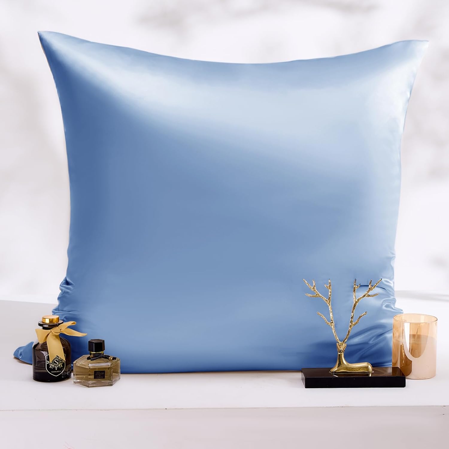 Калъфка за възглавница Vielit от сатен, 80 x 80 см, комплект от 2 и 2 ластика за коса, синя, мека като коприна, лесна за поддръжка, за коса и кожа