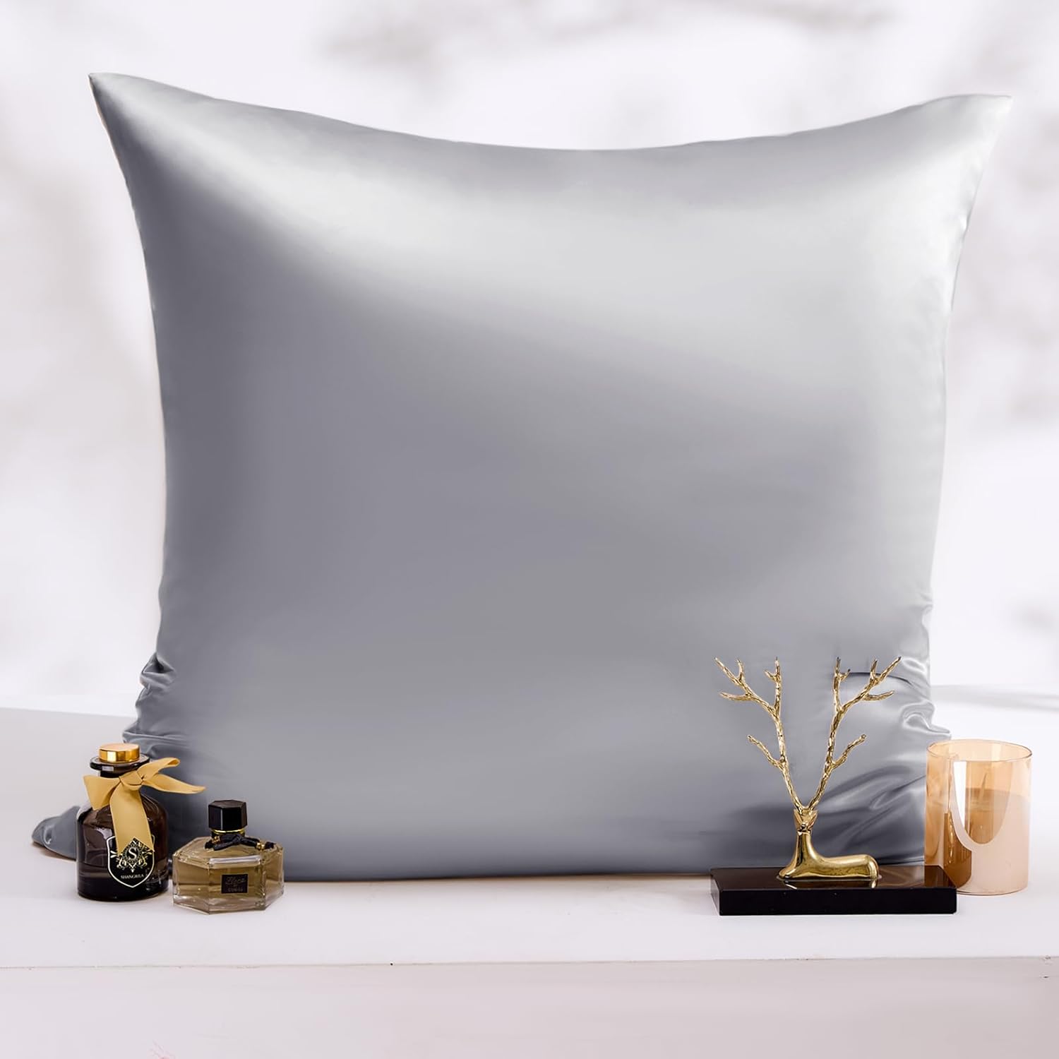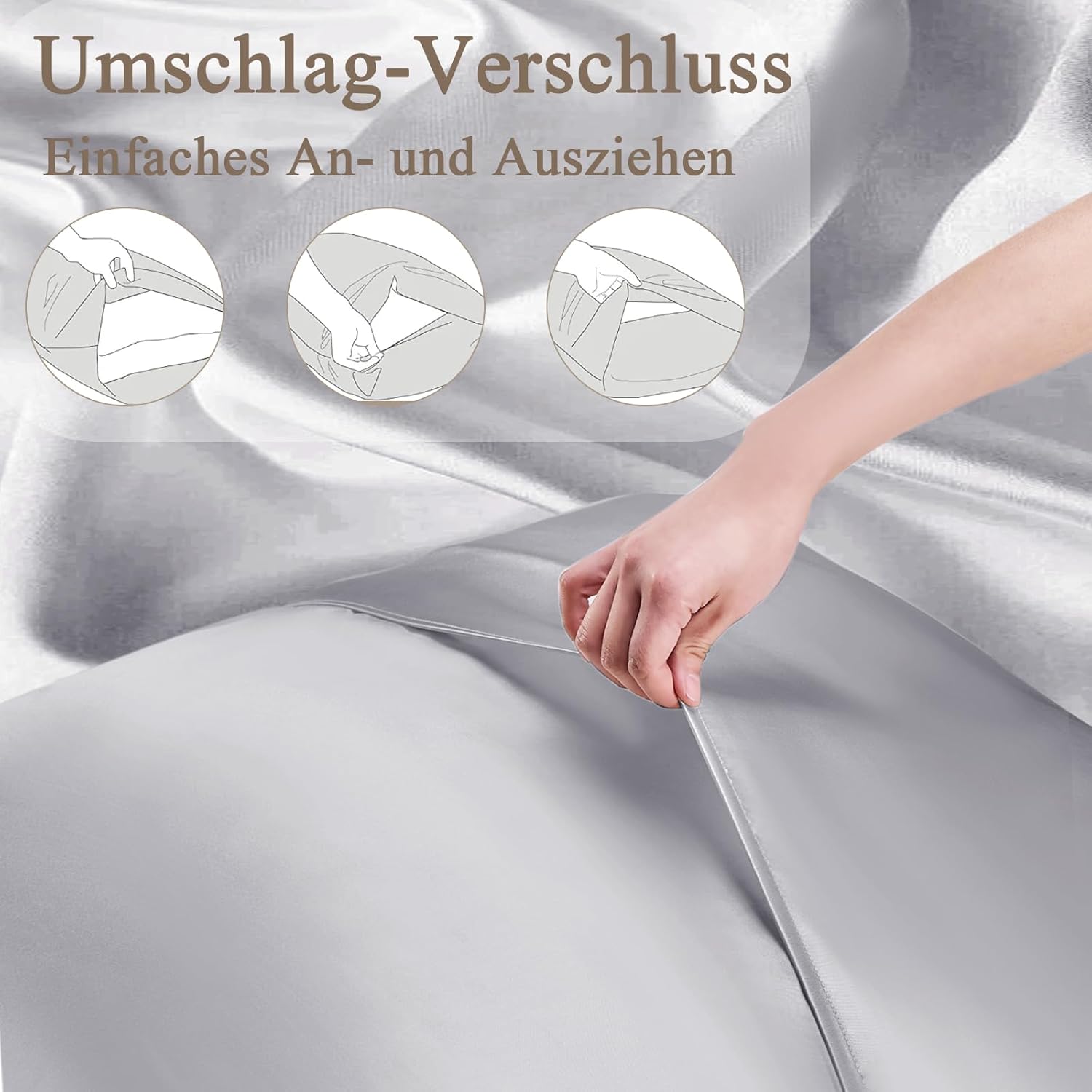 Калъфка за възглавница Vielit от сатен, 80 x 80 см, комплект от 2 и 2 ластика за коса, сива, мека като коприна, лесна за поддръжка, за коса и кожа