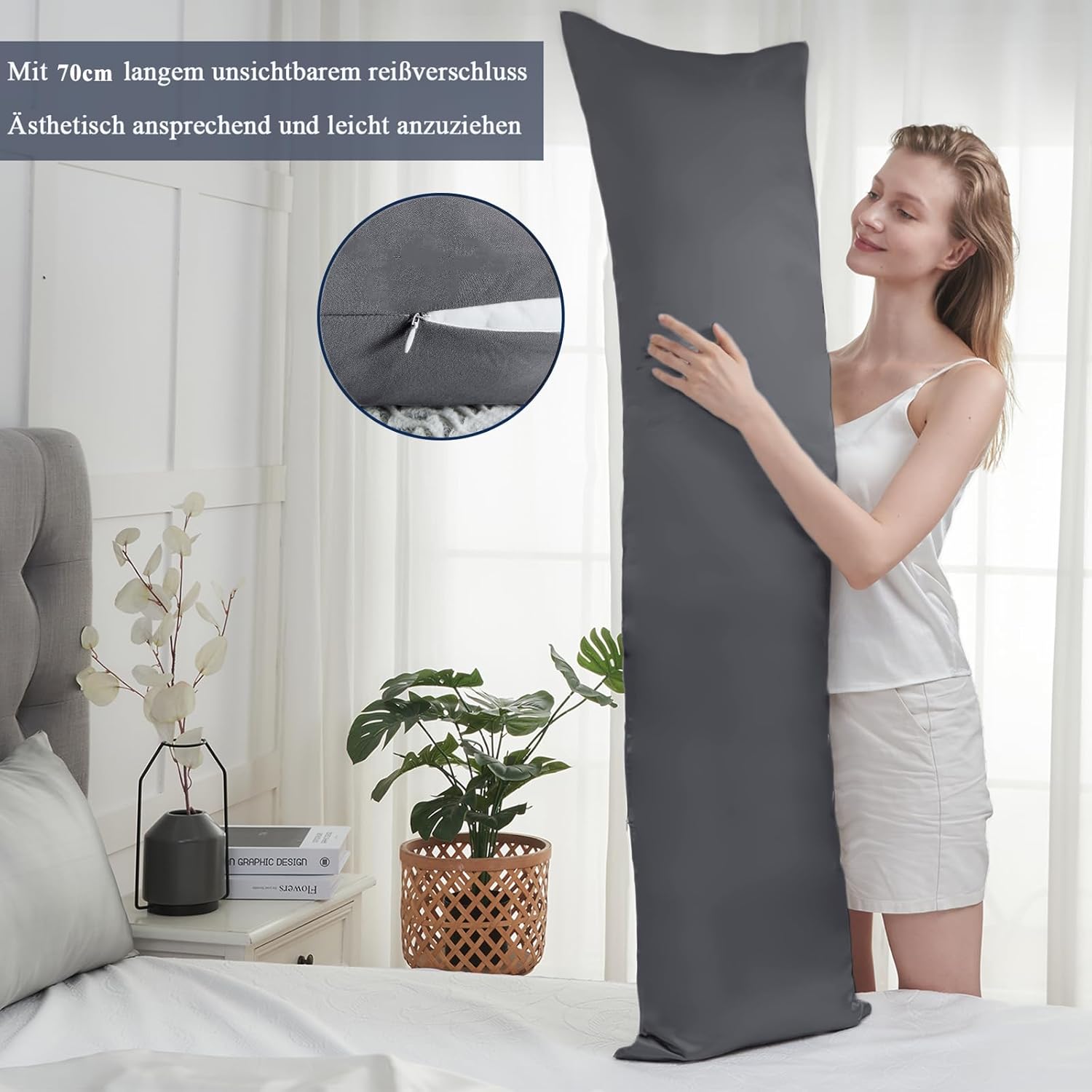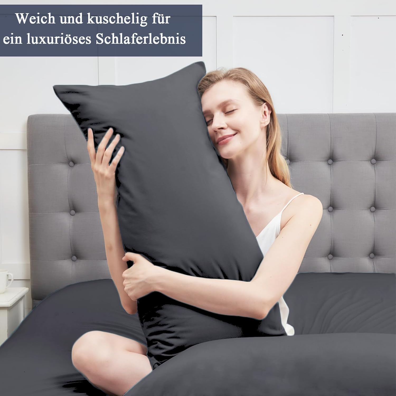 Калъфка за възглавница Vielit за спане настрани 40 x 145 см, Комплект от 2 калъфки за възглавници, Калъфка за възглавница за спане настрани, Меки калъфки за възглавници, със сертификат OEKO-TEX, Антрацит