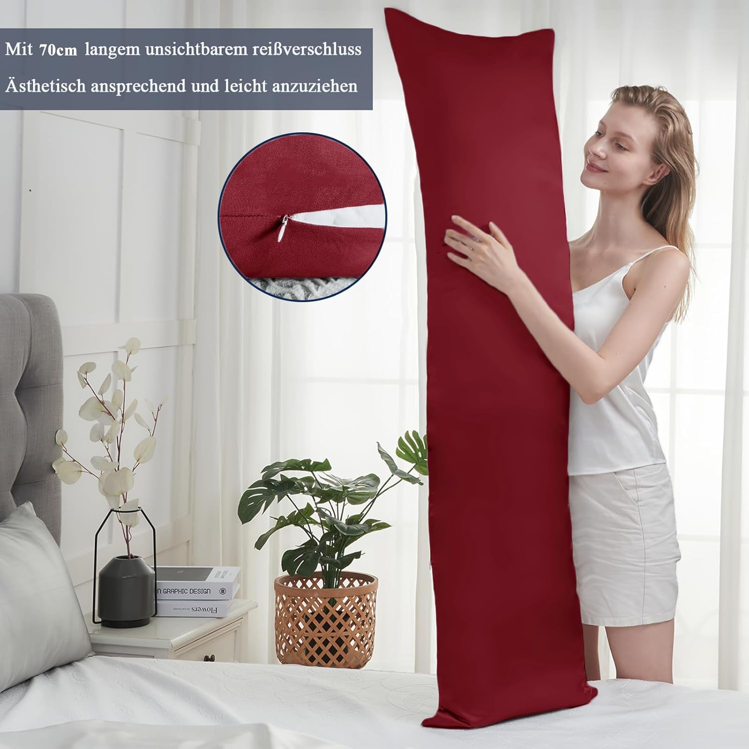 Калъфка за възглавница Vielit за спане настрани 40 x 145 см, Комплект от 2 калъфки за възглавници, Калъфка за възглавница за спане настрани, Меки калъфки за възглавници, със сертификат OEKO-TEX, Червен