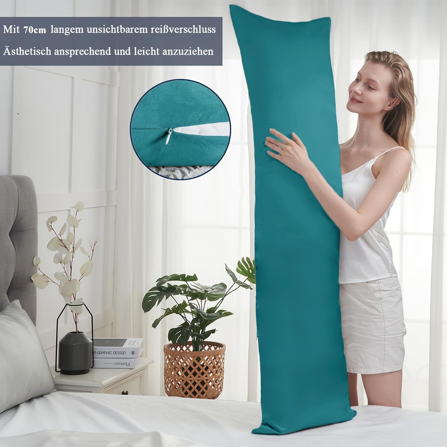 Калъфка за възглавница Vielit за спане настрани 40 x 145 см, Комплект от 2 калъфки за възглавници, Калъфка за възглавница за спане настрани, Меки калъфки за възглавници, със сертификат OEKO-TEX, Петрол