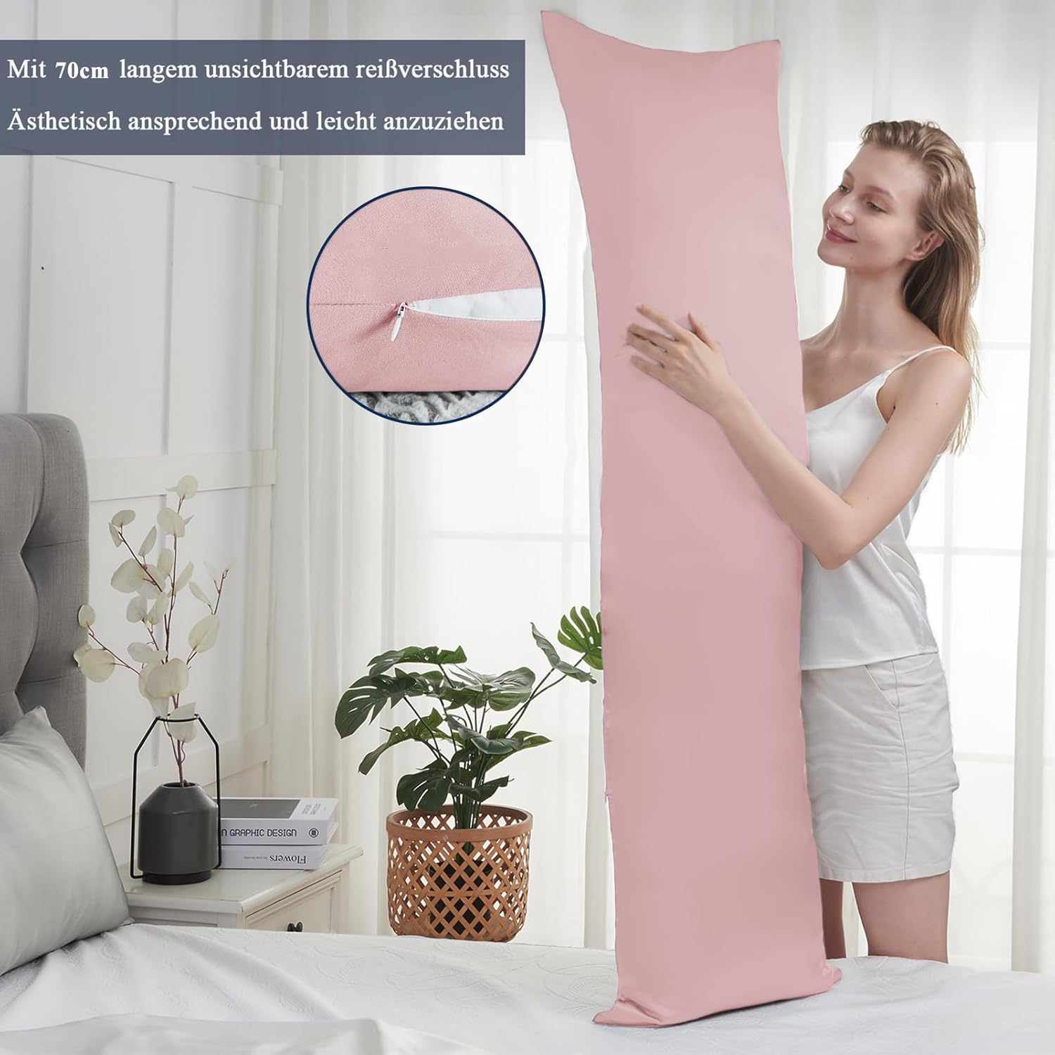 Калъфка за възглавница Vielit за спане настрани 40 x 145 см, Комплект от 2 калъфки за възглавници, Калъфка за възглавница за спане настрани, Меки калъфки за възглавници, със сертификат OEKO-TEX, Розов