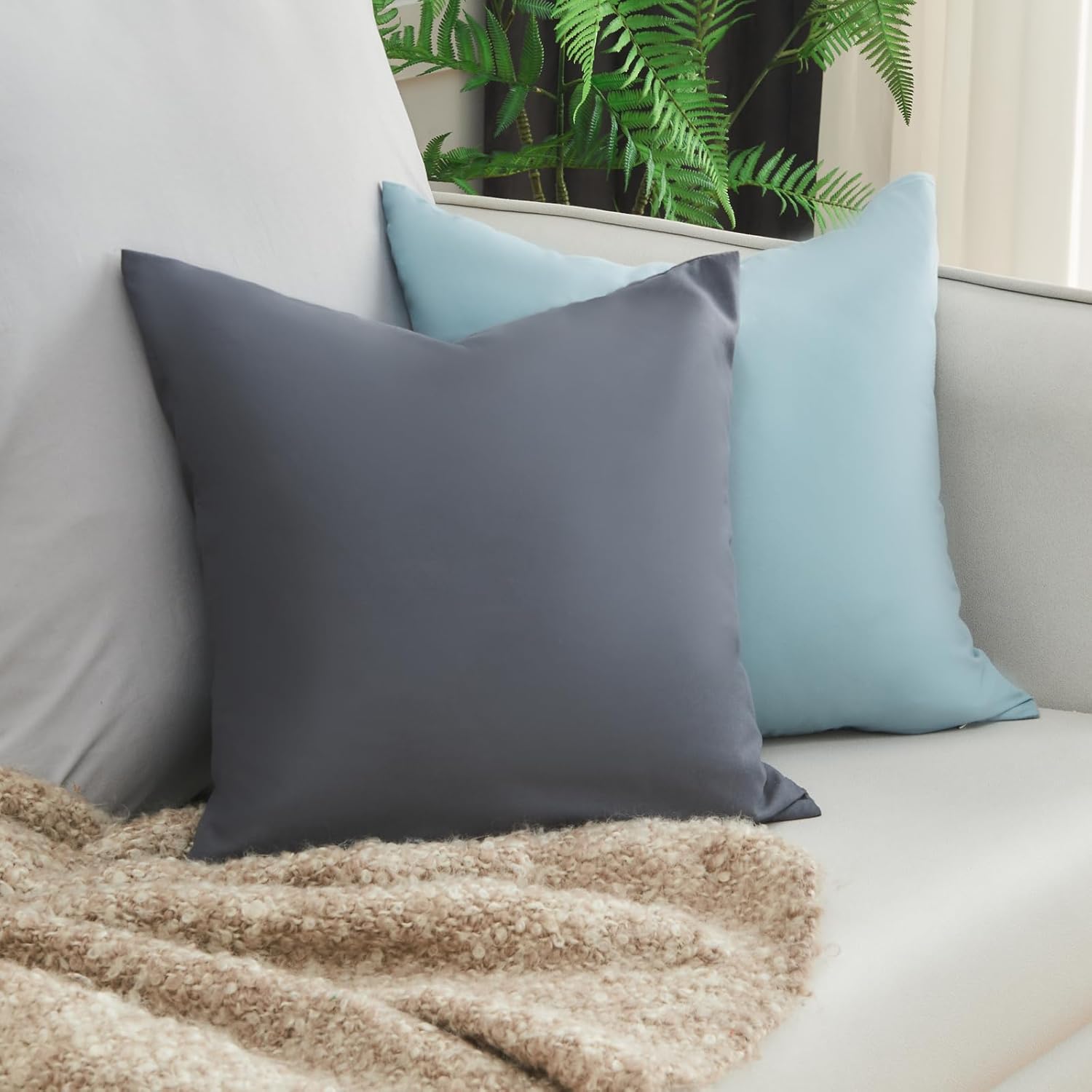 Калъфка за възглавница за диван Vielit 40 x 40 см, антрацит, мека калъфка за възглавница 40 x 40 см, комплект от 2 калъфки за възглавници от микрофибър 40 x 40 см, калъфка за възглавница 40 x 40 см, еко сертификат, устойчива, хипоалергенна