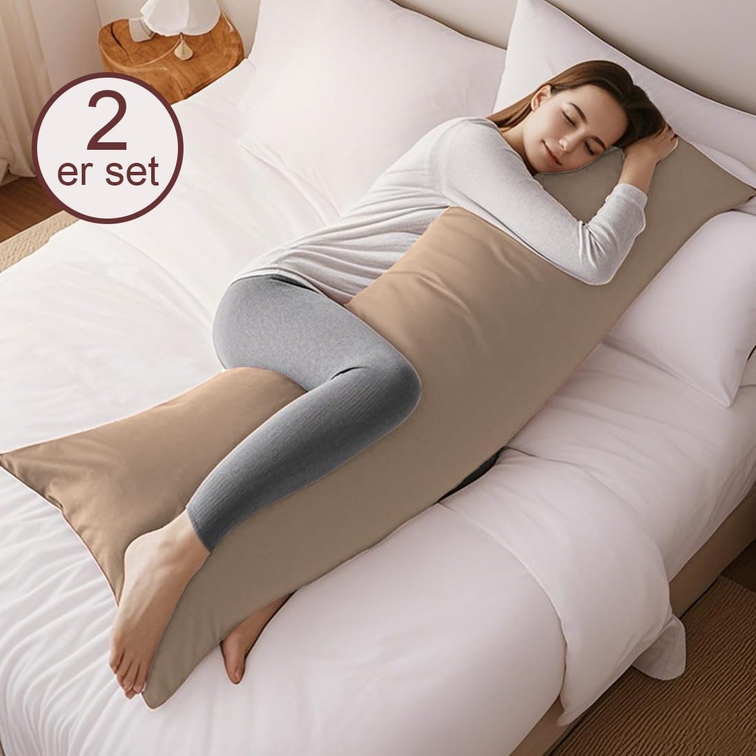 Калъфка за възглавница за спане настрани 40 x 145 см, Комплект от 2 - Бежова калъфка за възглавница 145 x 40 см с цип 100% микрофибърна устойчива и хипоалергенна калъфка за възглавница за спане настрани