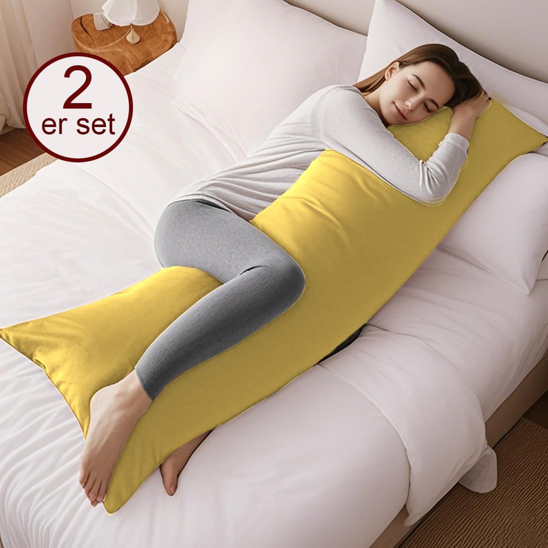 Калъфка за възглавница за спане настрани 40 x 145 см, Комплект от 2 - Жълта калъфка за възглавница 145 x 40 см с цип 100% микрофибърна устойчива и хипоалергенна калъфка за възглавница за спане настрани