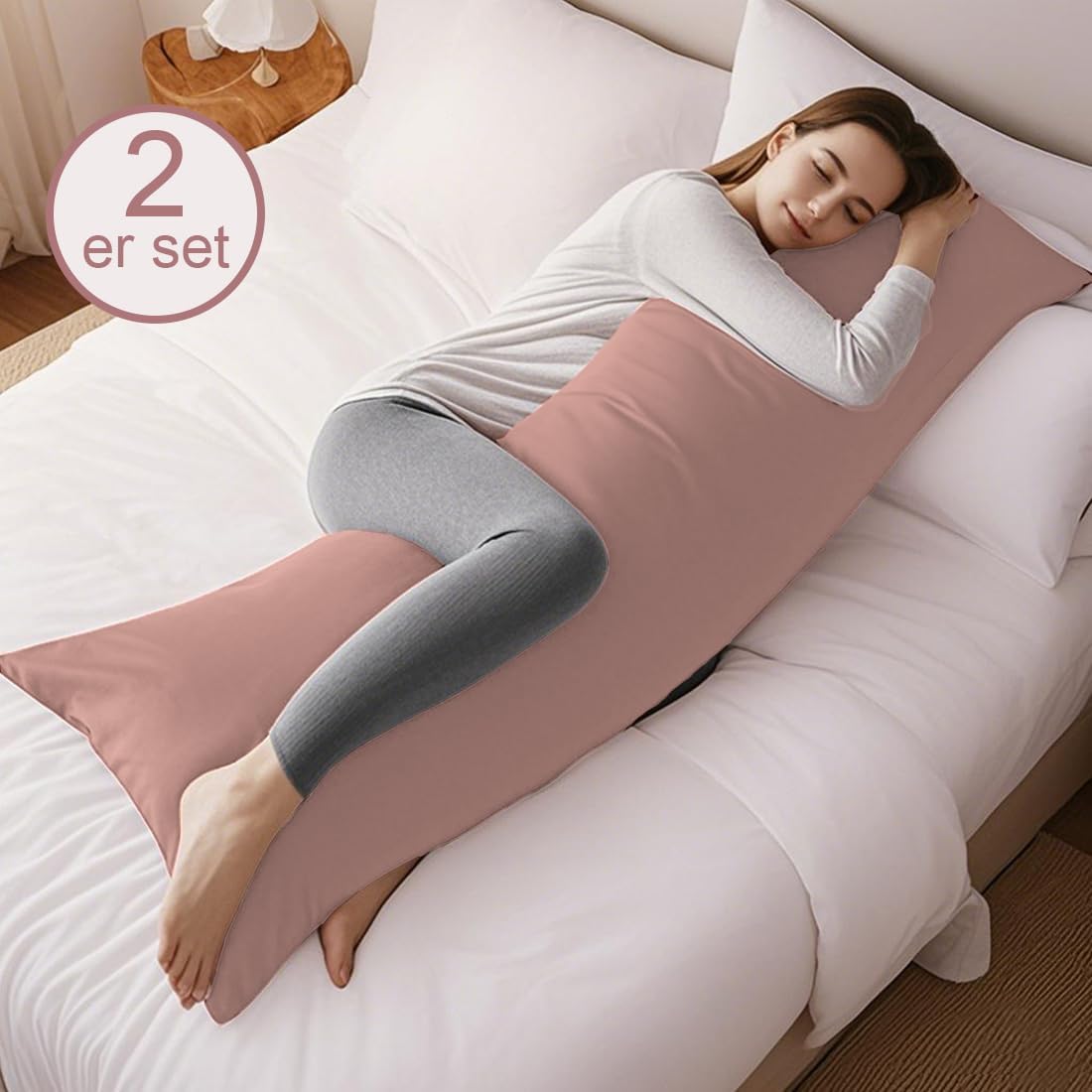 Калъфка за възглавница за спане настрани 40 x 145 см, Комплект от 2 - Розова калъфка за възглавница 145 x 40 см с цип, 100% устойчива на микрофибър и хипоалергенна калъфка за възглавница за спане настрани