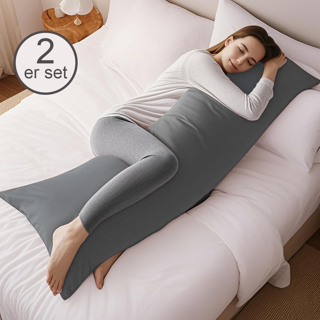 Калъфка за възглавница за спане настрани 40 x 145 см, Комплект от 2 - Сива калъфка за възглавница 145 x 40 см с цип, 100% устойчива на микрофибър и хипоалергенна калъфка за възглавница за спане настрани