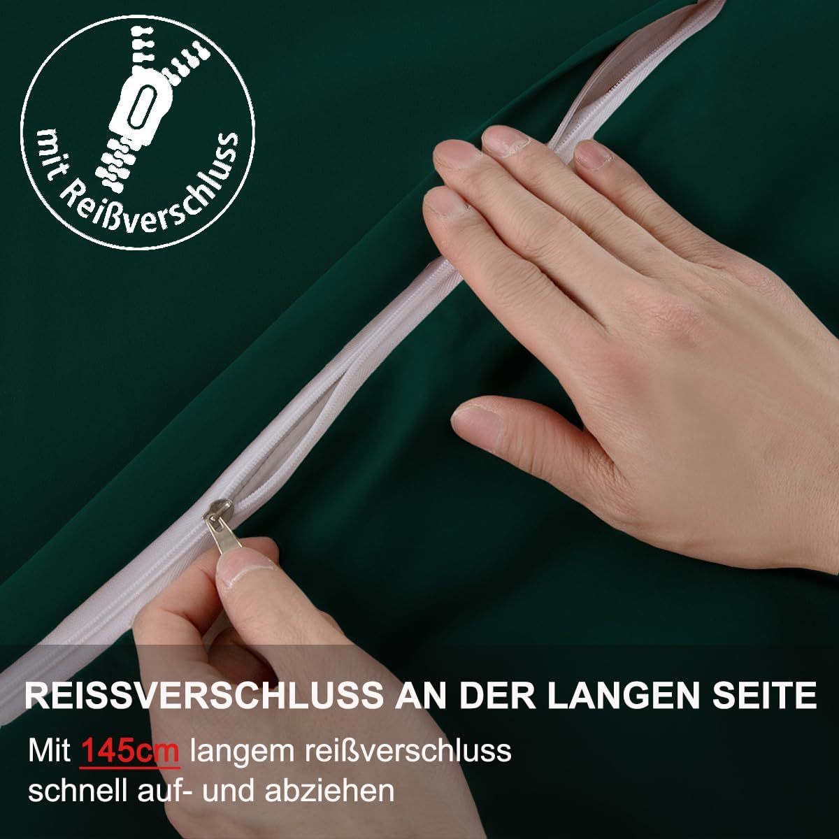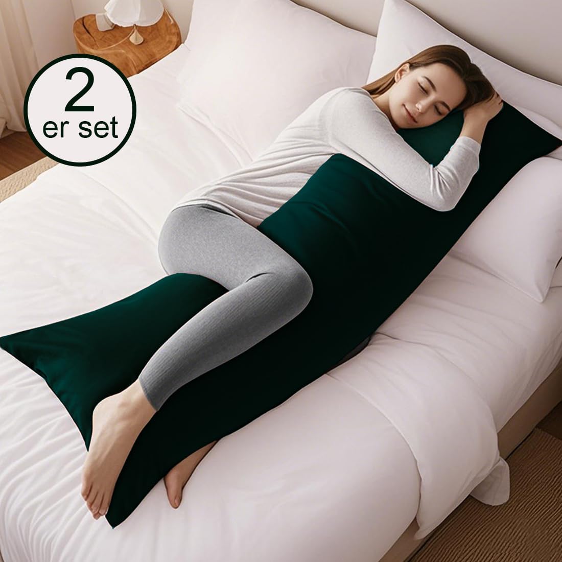 Калъфка за възглавница за спане настрани 40 x 145 см, Комплект от 2 - Тъмнозелена калъфка за възглавница 145 x 40 см с цип, 100% устойчива на микрофибър и хипоалергенна калъфка за възглавница за спане настрани