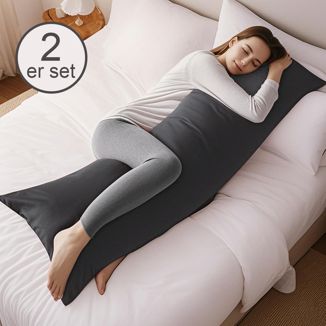 Калъфка за възглавница за спане настрани 40 x 145 см, Комплект от 2, Антрацитна калъфка за възглавница 145 x 40 см с цип, 100% микрофибърна устойчива и хипоалергенна калъфка за възглавница за спане настрани