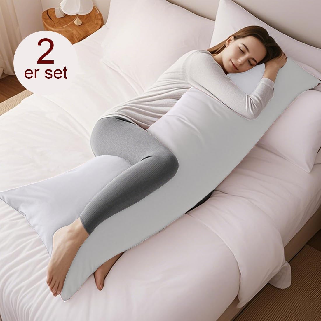Калъфка за възглавница за спане настрани 40 x 145 см, Комплект от 2, Бяла калъфка за възглавница 145 x 40 см с цип, 100% устойчива на микрофибър и хипоалергенна калъфка за възглавница за спане настрани