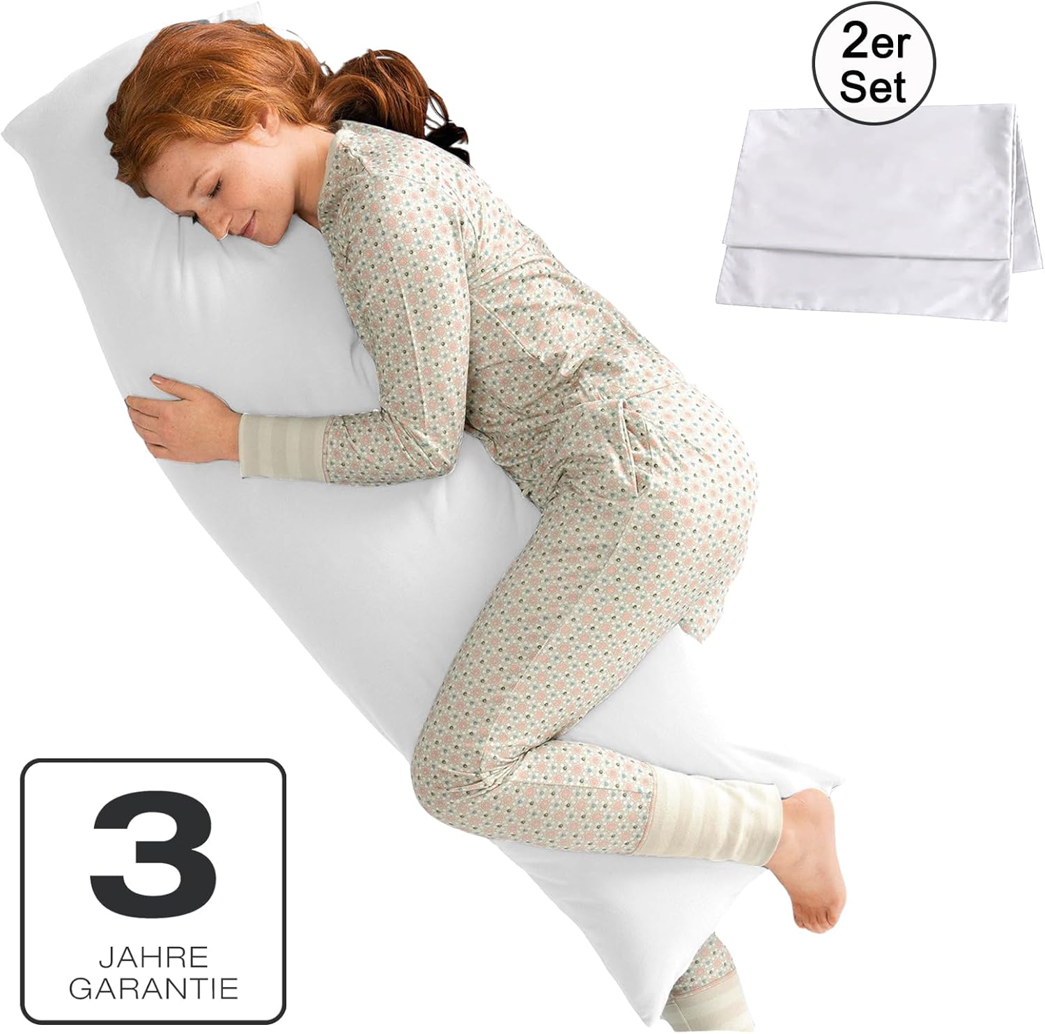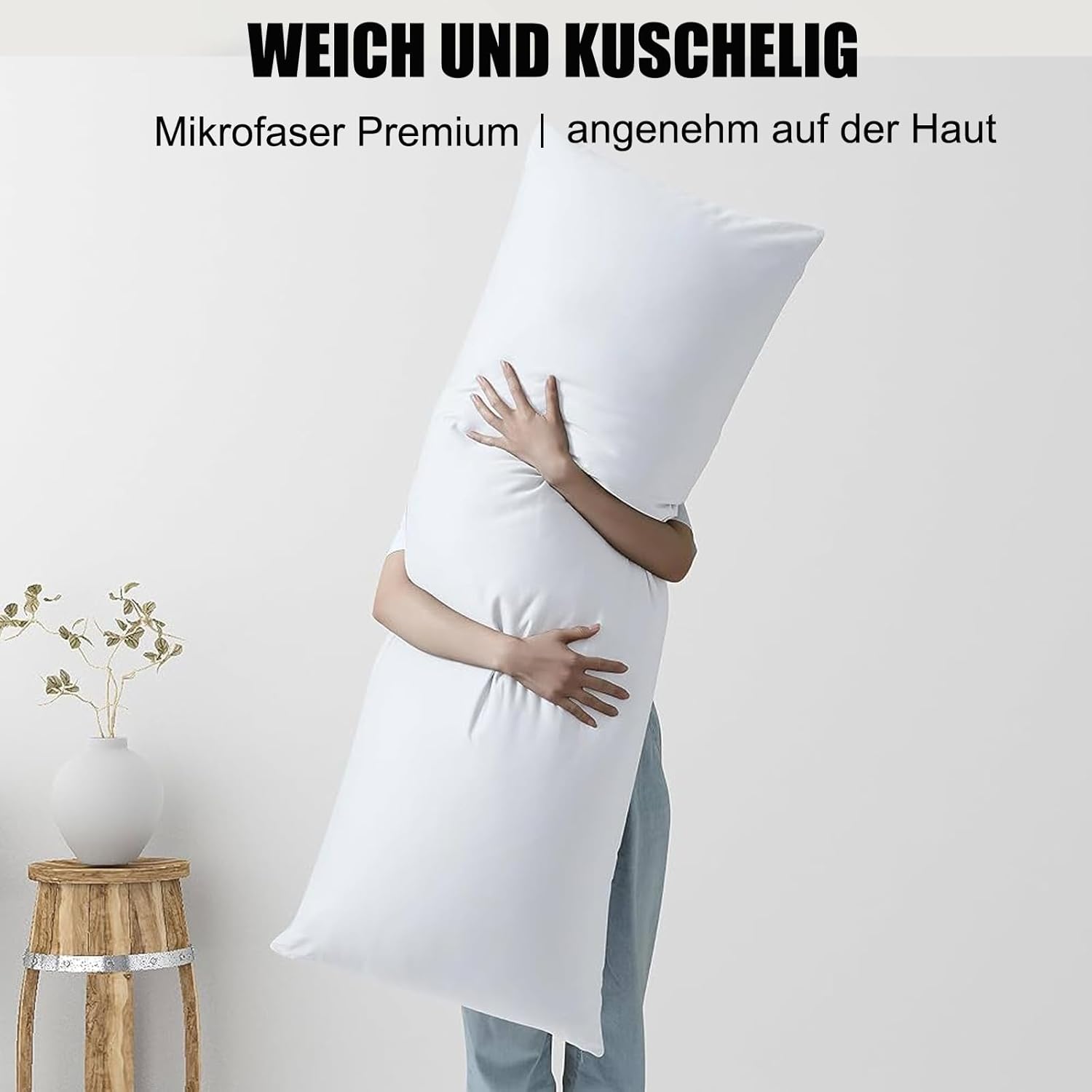 Калъфка за възглавница за спане настрани, 40 x 145 см, Комплект от 2, Бяла калъфка за възглавница с цип, 100% устойчива на микрофибър и хипоалергенна калъфка за възглавници за спане настрани