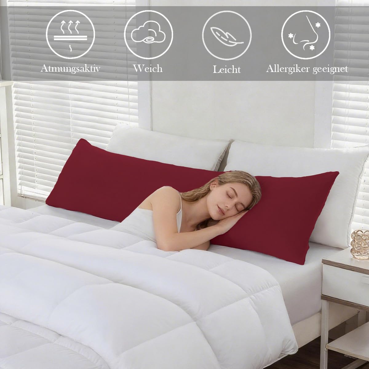 Калъфка за възглавница за спане настрани 40 x 145 см, Комплект от 2, Калъфки за възглавници 40 x 145 см, Червена, Калъфка за възглавница от 100% микрофибър с цип, Мека и нежелаеща се