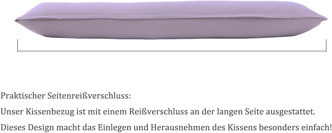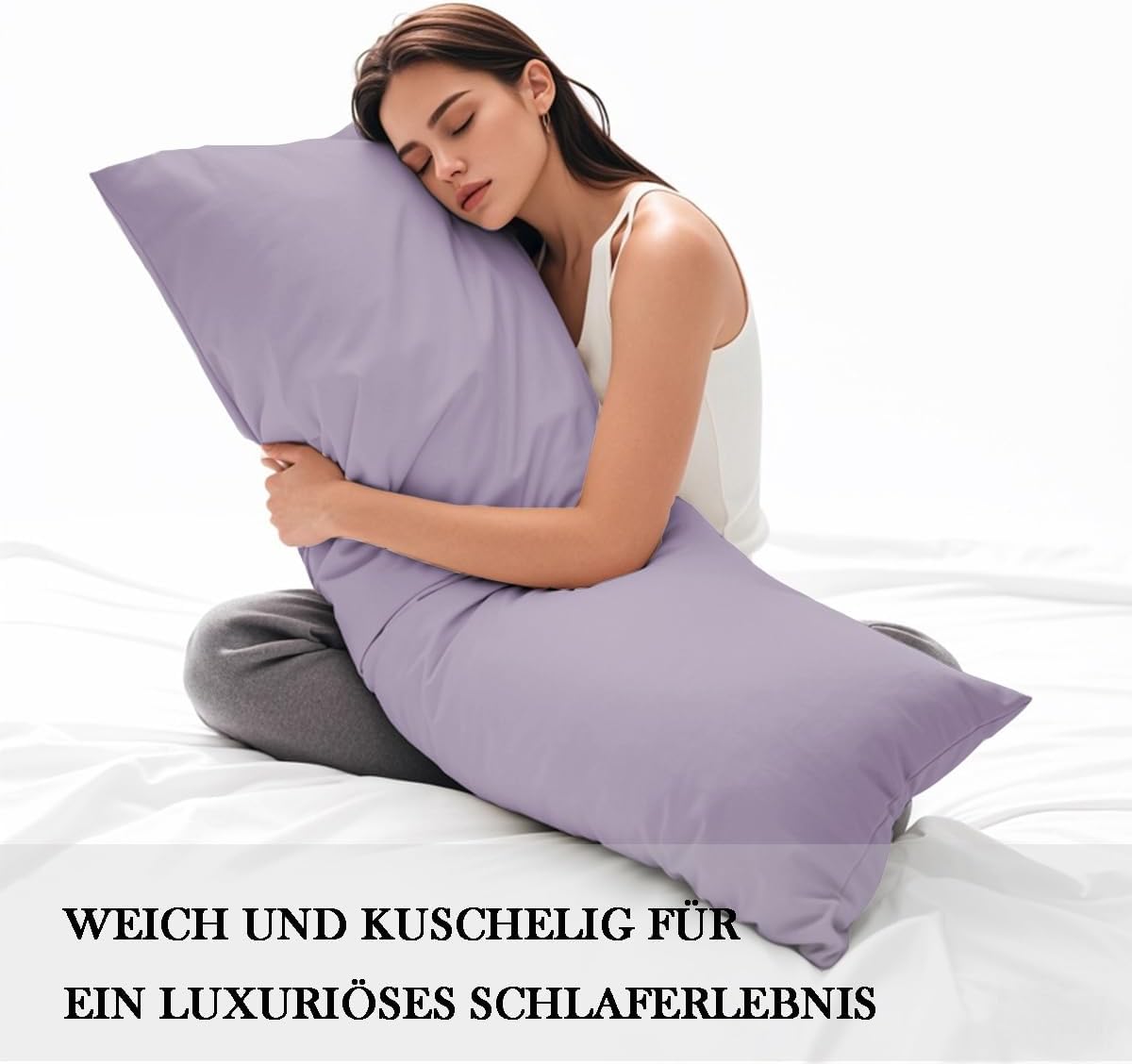 Калъфка за възглавница за спане настрани 40 x 145 см, Комплект от 2, Калъфки за възглавници 40 x 145 см, Лавандулово, Калъфка за възглавница 100% микрофибър с цип, Мека и нежелаеща се