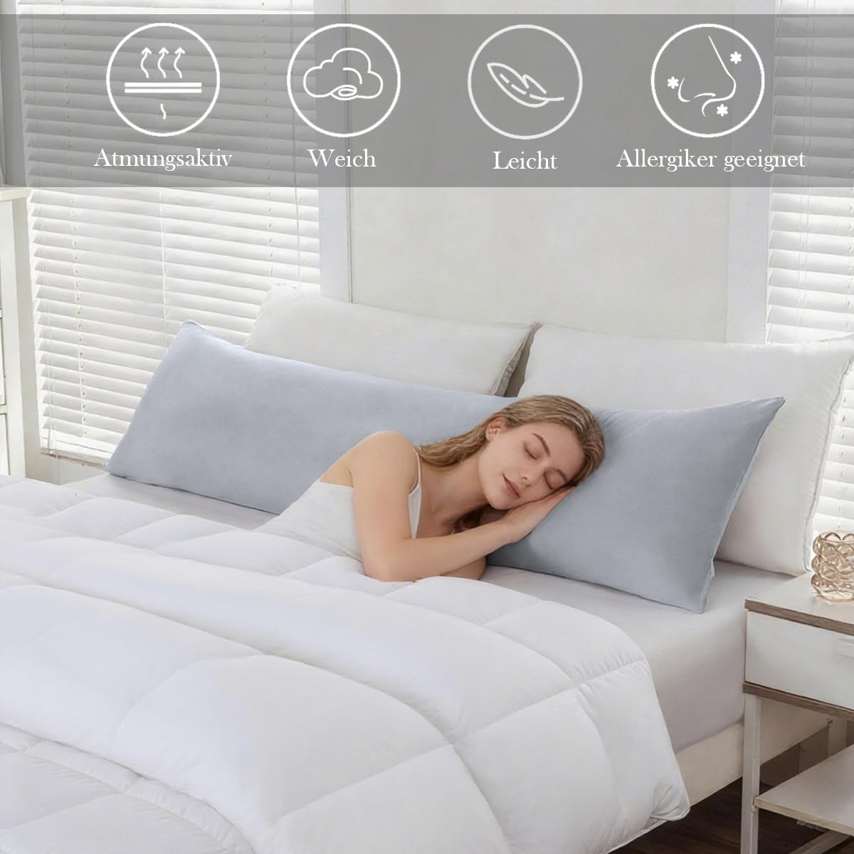 Калъфка за възглавница за спане настрани 40 x 145 см, Комплект от 2, Калъфки за възглавници 40 x 145 см, Сив, Калъфка за възглавница от 100% микрофибър с цип, Мека и нежелаеща се