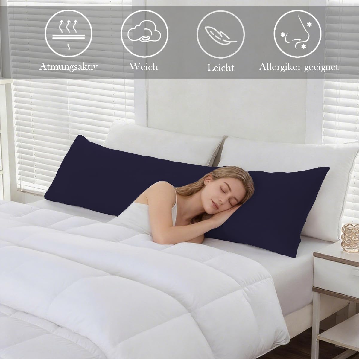 Калъфка за възглавница за спане настрани 40 x 145 см, Комплект от 2, Калъфки за възглавници 40 x 145 см, Тъмно син, Калъфка за възглавница от 100% микрофибър с цип, Мека и нежелаеща се