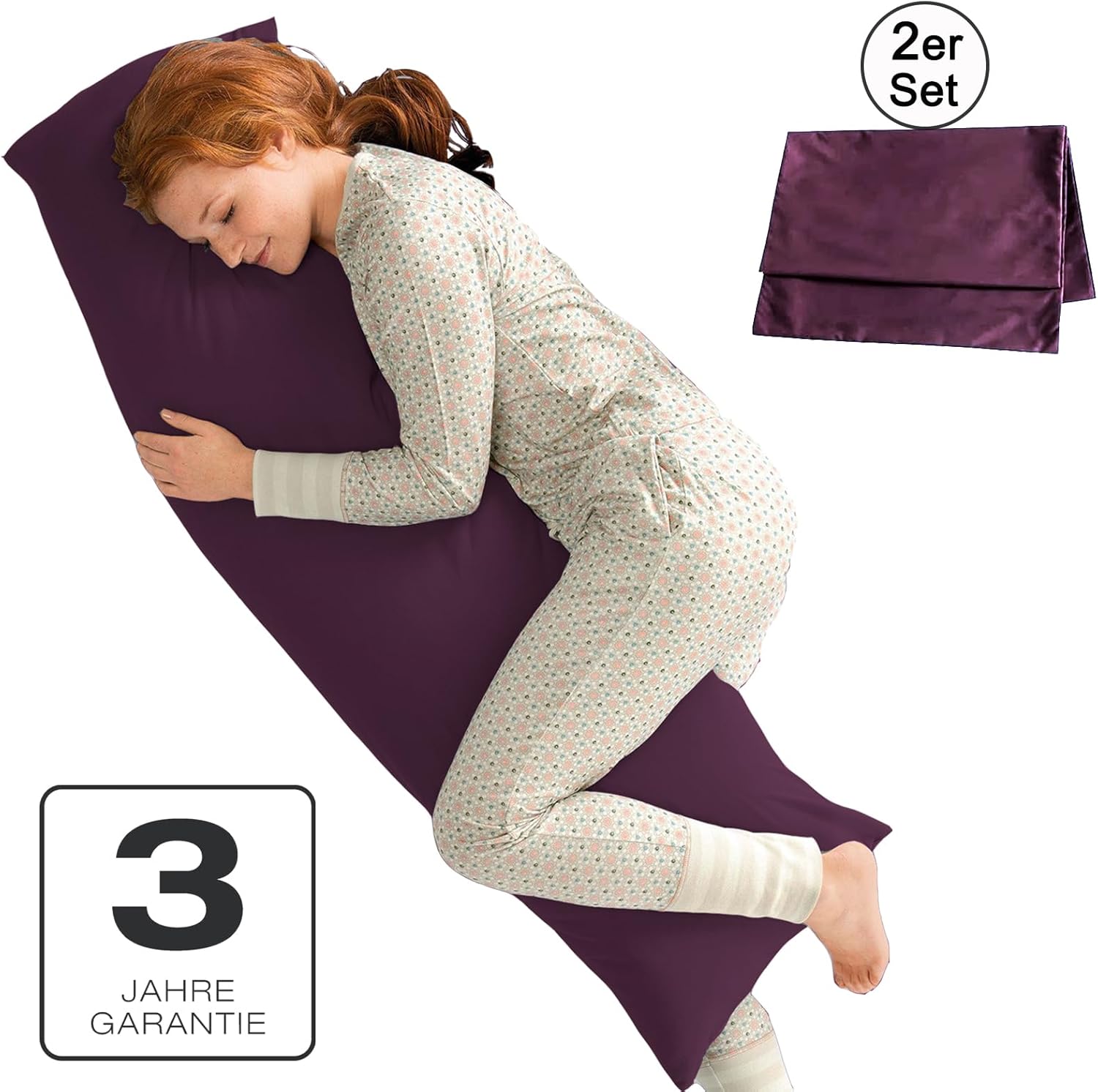 Калъфка за възглавница за спане настрани, 40 x 145 см, Комплект от 2, Лилава калъфка за възглавница с цип, 100% устойчива на микрофибър и хипоалергенна калъфка за възглавници за спане настрани