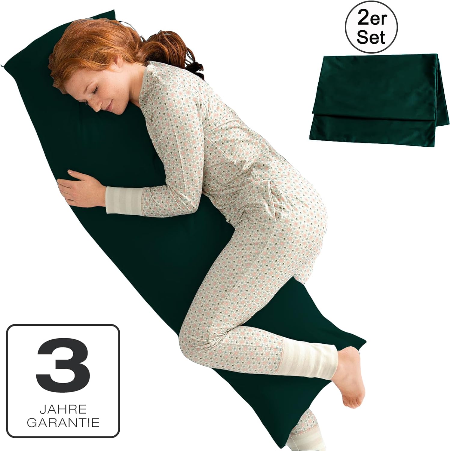 Калъфка за възглавница за спане настрани, 40 x 145 см, Комплект от 2, Зелена калъфка за възглавница с цип, 100% устойчива на микрофибър и хипоалергенна калъфка за възглавници за спане настрани