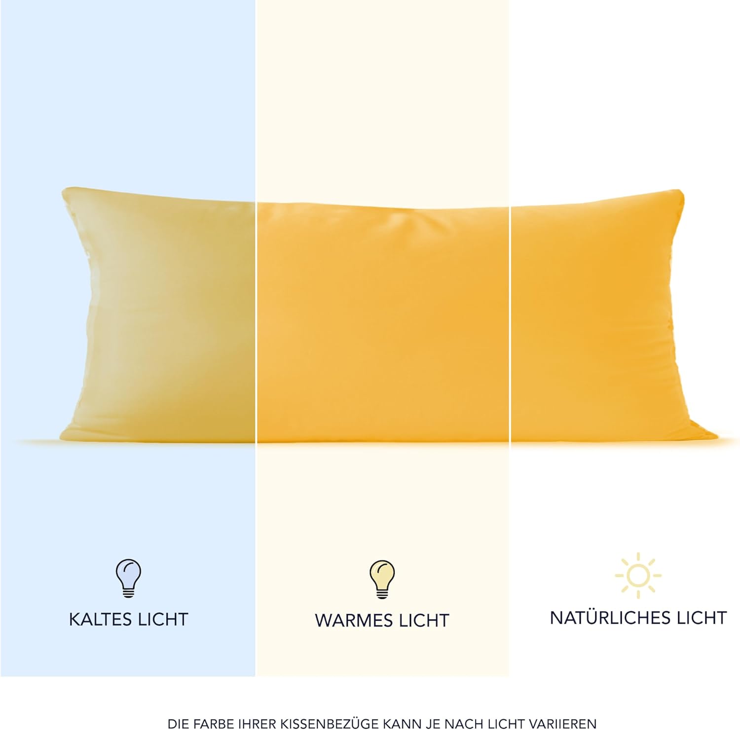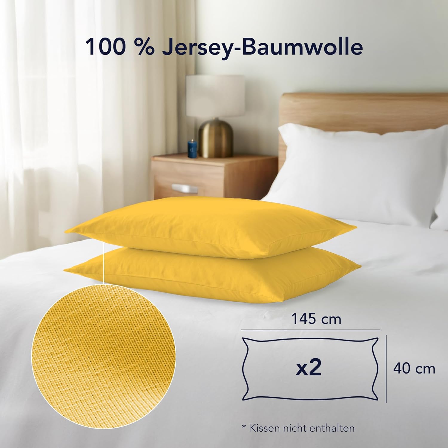 Калъфки за възглавници Dreamzie, 40 x 145 см (Комплект от 2), 100% памук Джърси, 150 г/м², жълти, устойчиви и хипоалергенни
