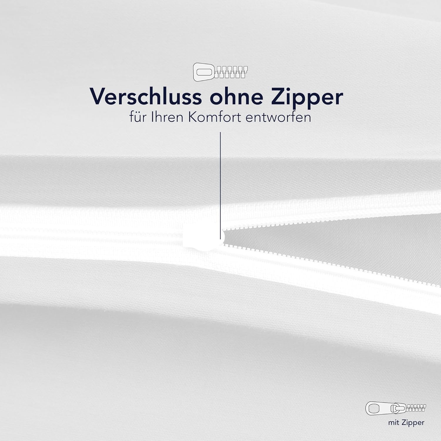 • Дизайн и лесна грижа – естествената елегантност на памука в комбинация с неговата простота позволява на тази калъфка за възглавница с размери 40 x 80 см да се впише перфектно във всяка спалня. Вечните комплекти се предлагат в 6 цвята (бяло, черно, сиво, антрацит, бежово, синьо, червено, тъмносиньо) и се вписват идеално и в декоративната всекидневна. Калъфките за възглавници се перет лесно: в пералня на 60°C.