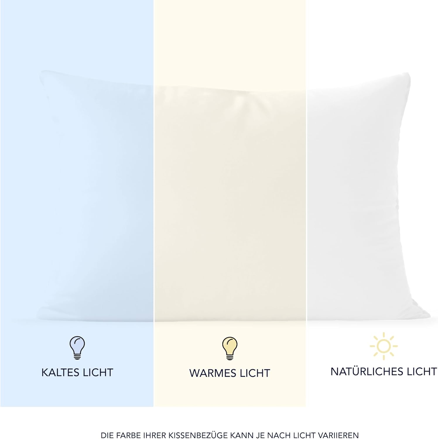 • Дизайн и лесна грижа – естествената елегантност на памука в комбинация с неговата простота позволява на тази калъфка за възглавница с размери 40 x 80 см да се впише перфектно във всяка спалня. Вечните комплекти се предлагат в 6 цвята (бяло, черно, сиво, антрацит, бежово, синьо, червено, тъмносиньо) и се вписват идеално и в декоративната всекидневна. Калъфките за възглавници се перет лесно: в пералня на 60°C.