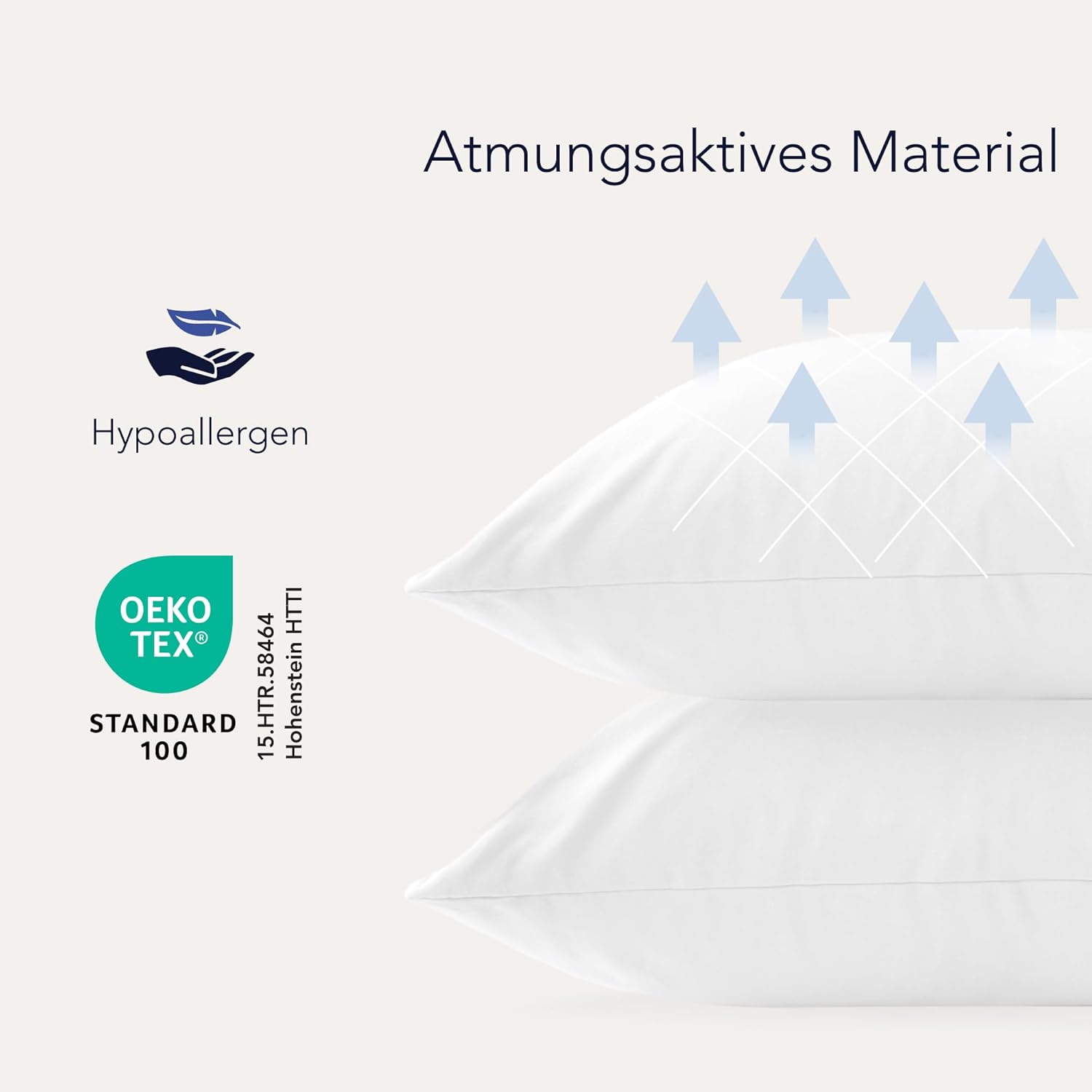 Калъфки за възглавници Dreamzie, 40 x 70 см (Комплект от 2), 100% памук Джърси, 150 г/м², бели, устойчиви и хипоалергенни