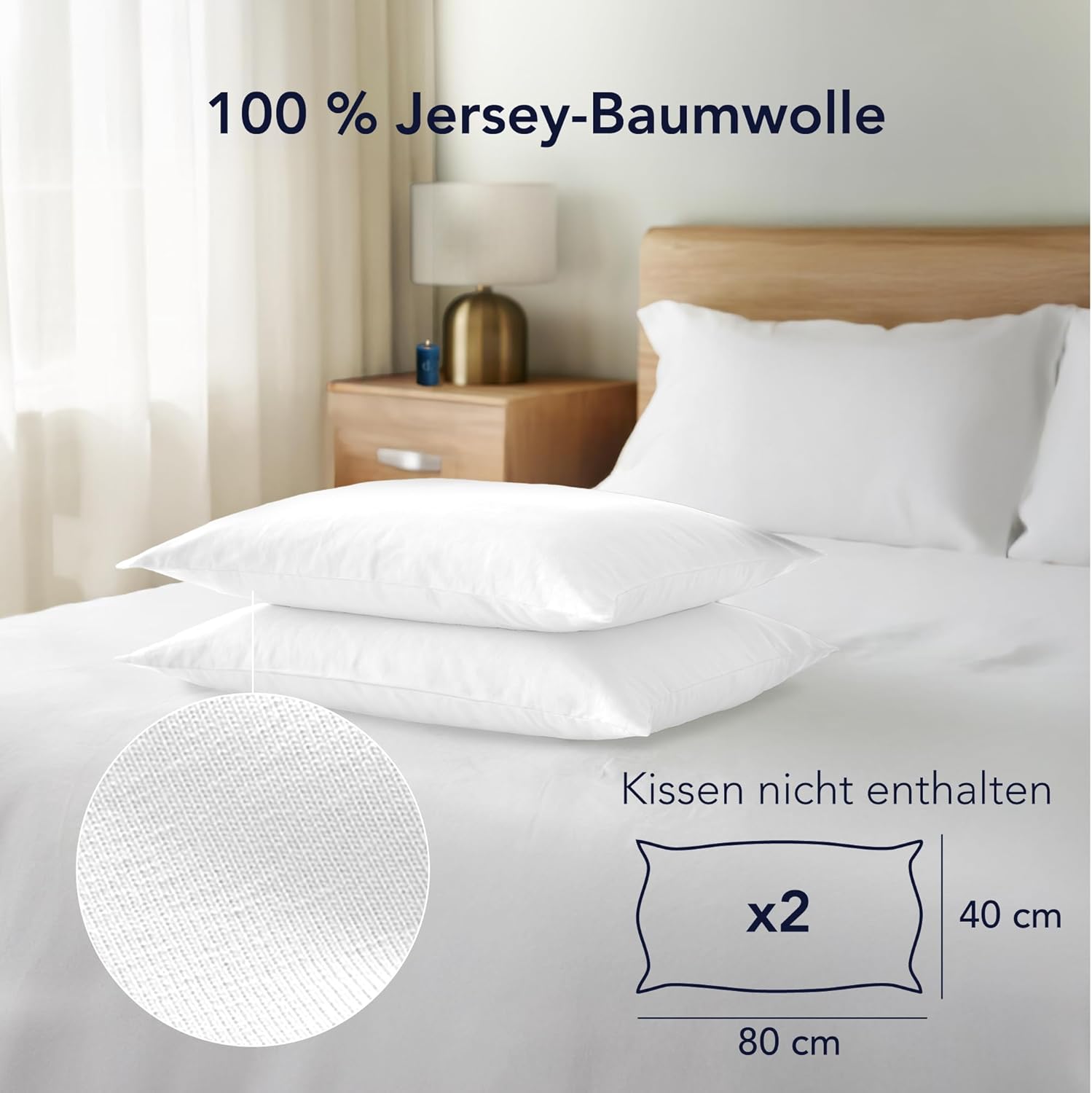 Калъфки за възглавници Dreamzie, 40 x 80 см (Комплект от 2), 100% памук Джърси, 150 г/м², бели, устойчиви и хипоалергенни